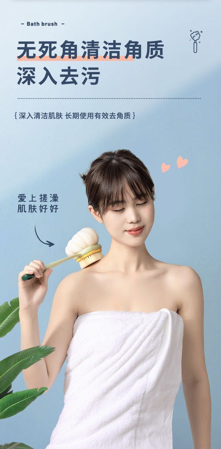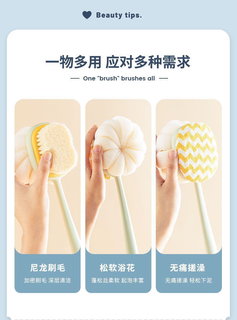 バスルームシャワーブラシボディブラシマッサージブラシバックブラシプラスロング柄猫耳クリーニングブラシナイロンブラシ
