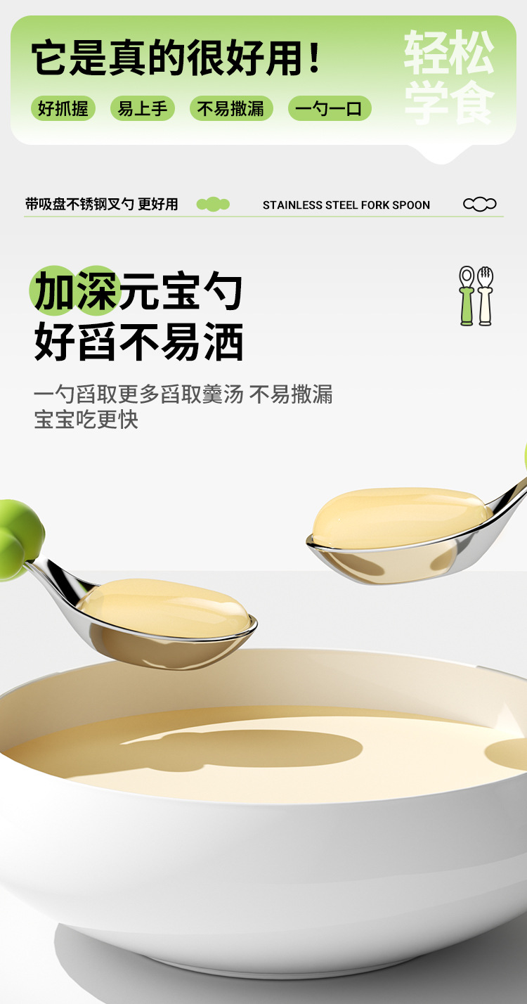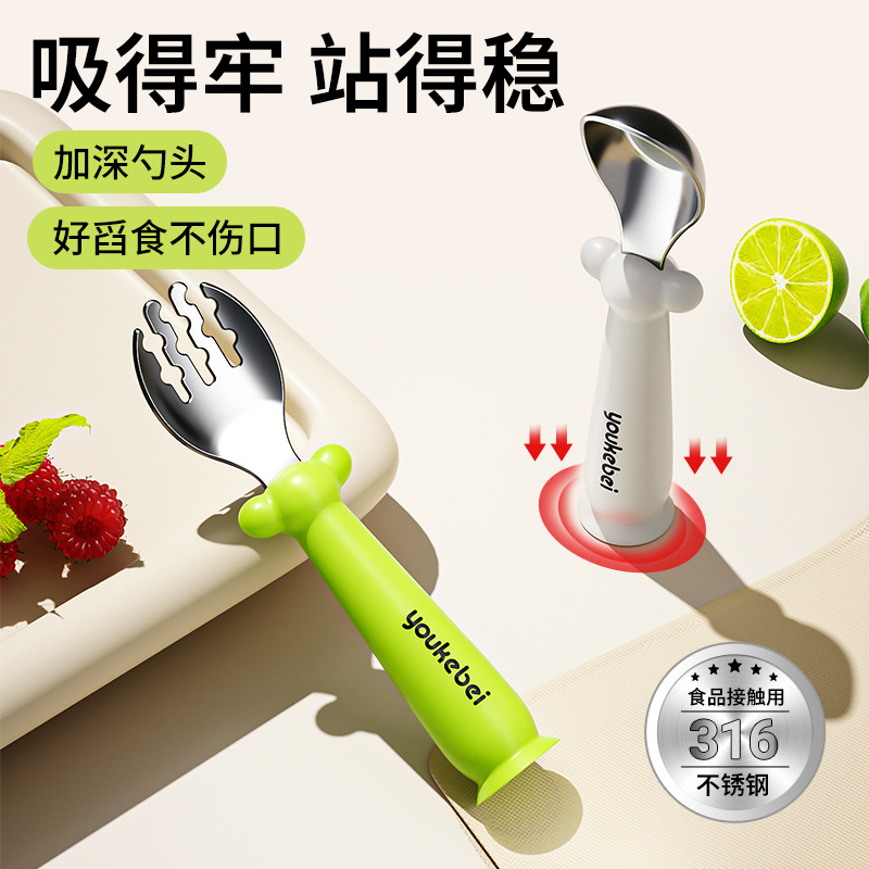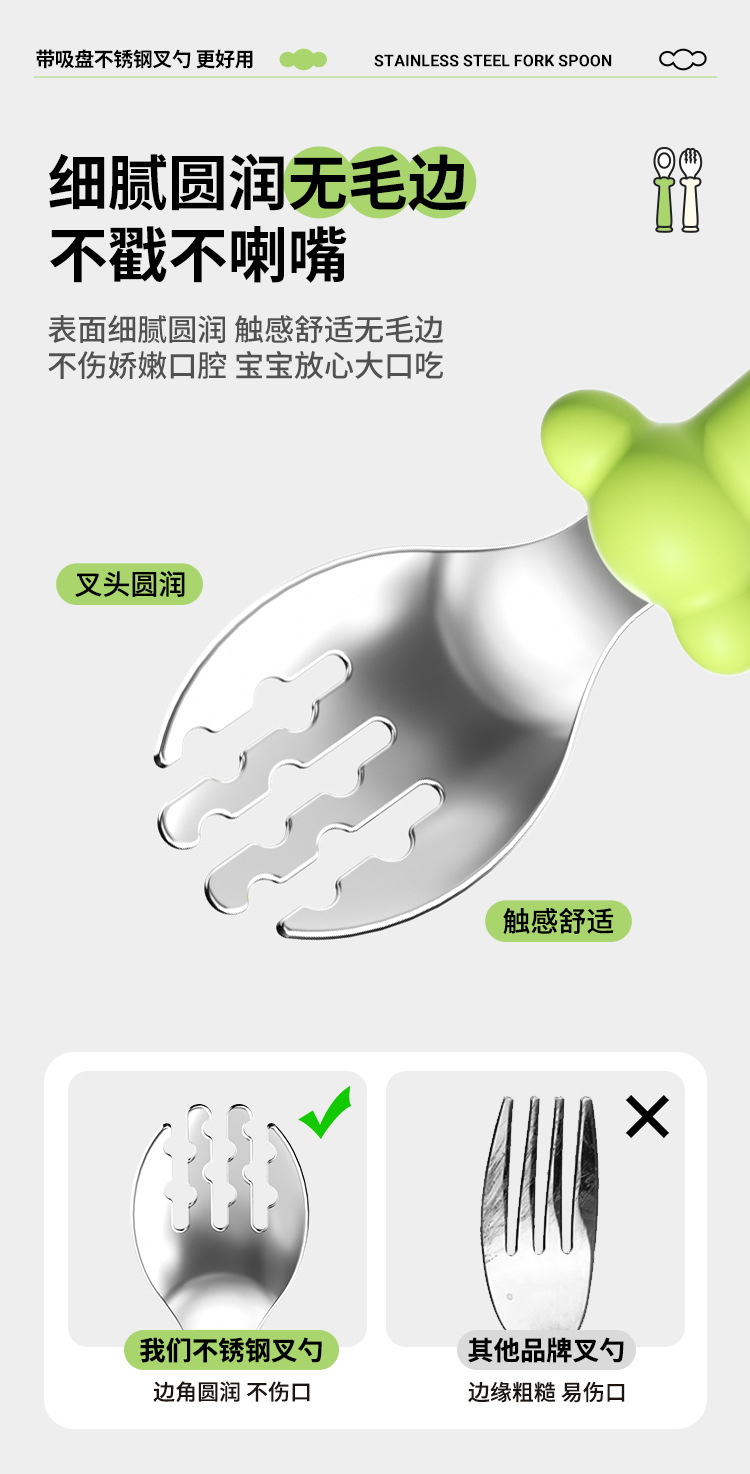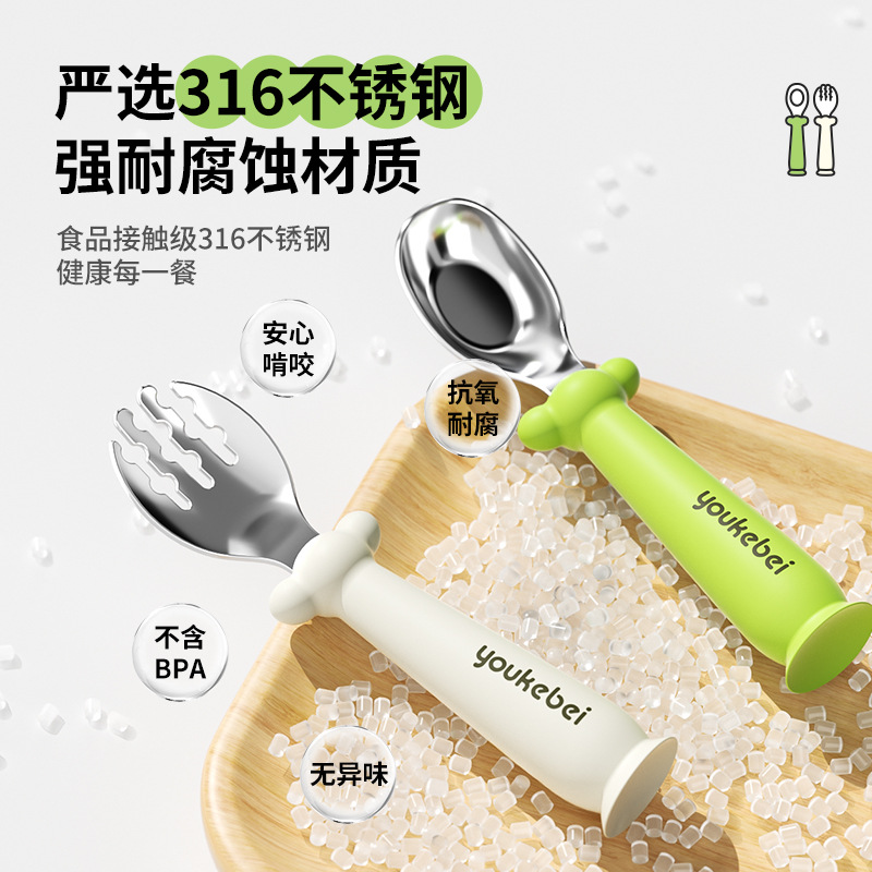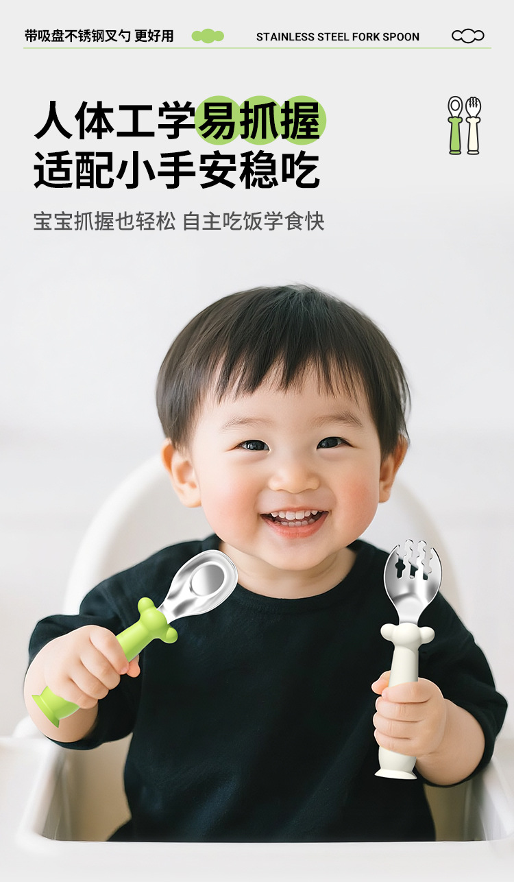 宝宝吃饭训练不锈钢叉勺儿童自主进食练手工具叉勺婴幼儿辅食进餐