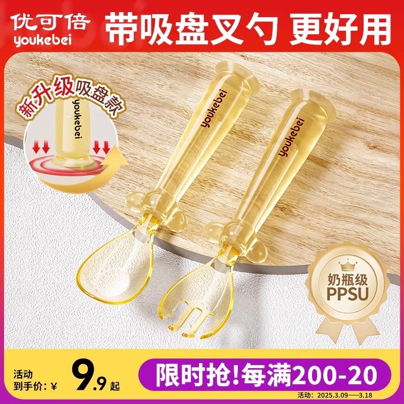 ベビー用補助食スプーンppsu元宝スプーン子供用ベビーフォークスプーン食事練習食器赤ちゃんの自主食事