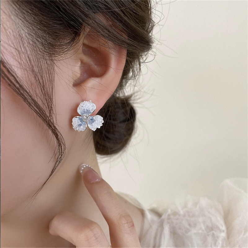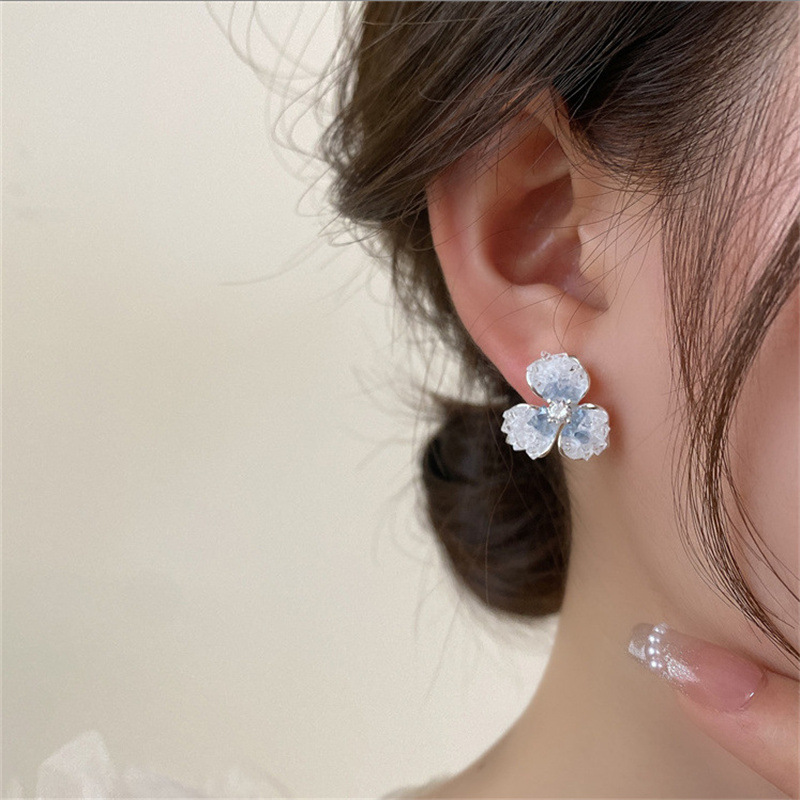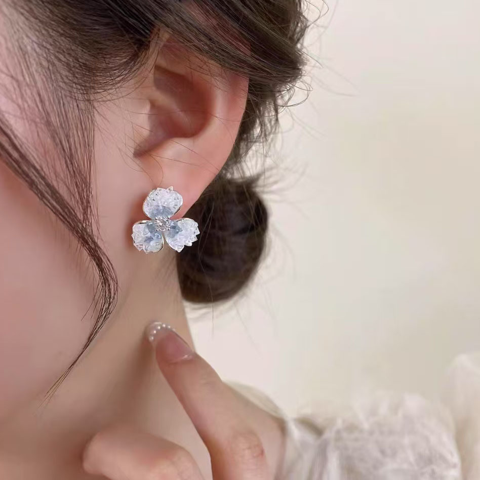 2025春夏イヤリング四つ葉のクローバーイヤリングブルーフラワーライトラグジュアリー高級感ジルコン卸売2025新作