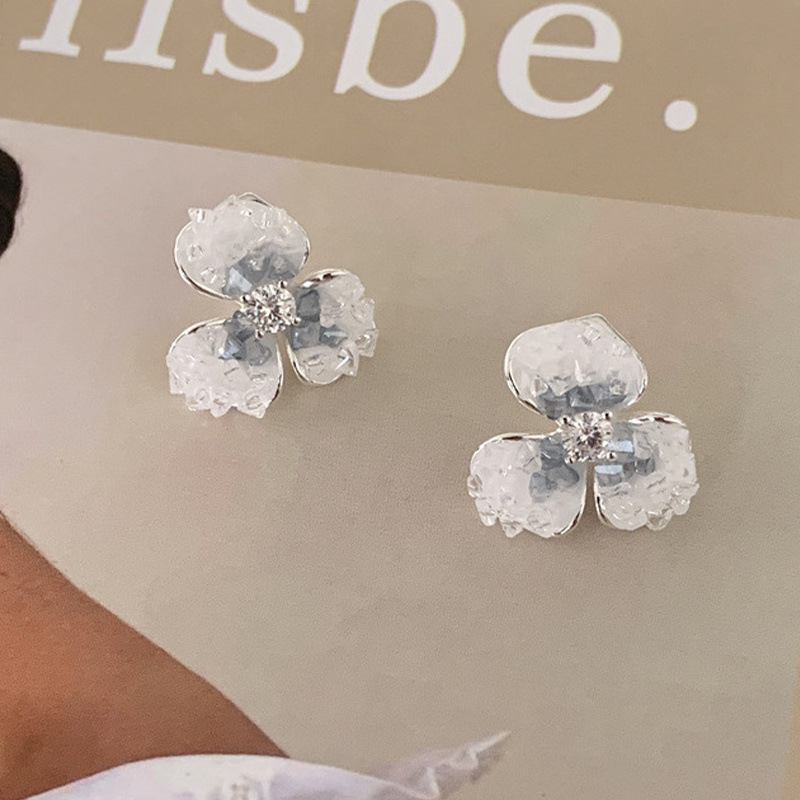 ホワイトアイリスシュガーキューブイヤリング取り外し可能な DIY イヤリングジルコンプレート花かわいい気質小さな新鮮なインスタイル女性