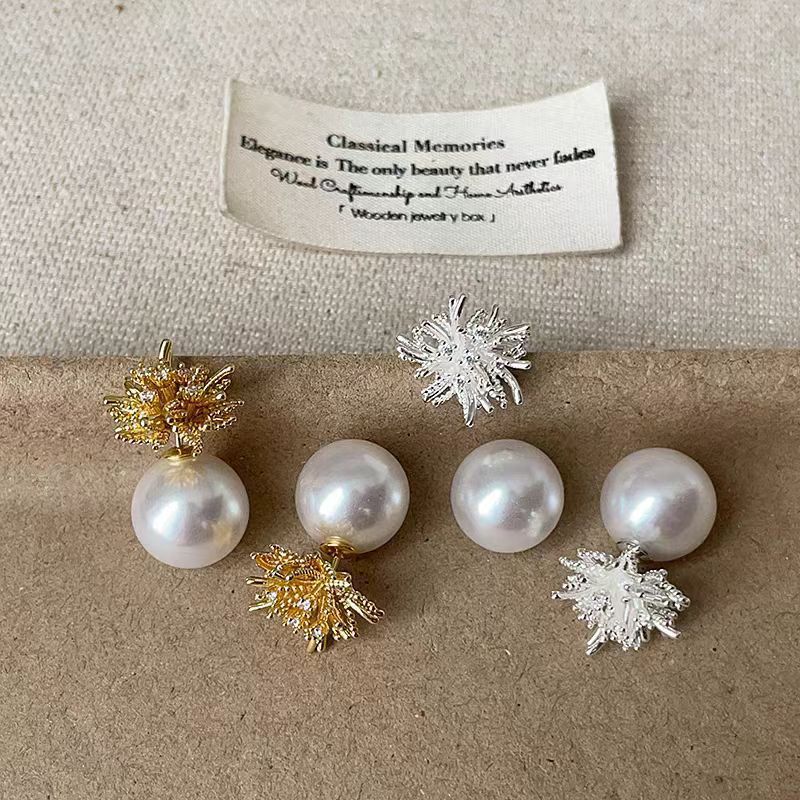 小清新で甘いファッションの白い花の真珠のピアスはシンプルで、豪華で洗練されています。