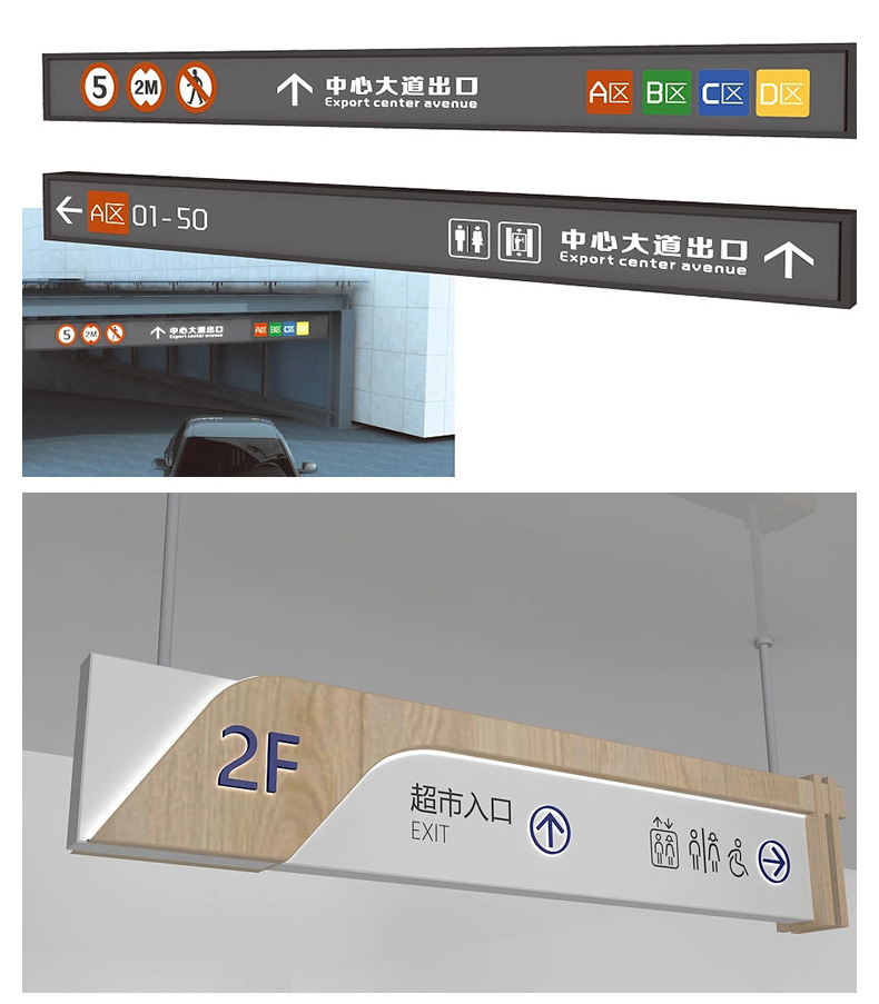 ステンレス製スピリットフォートカスタムショッピングモール看板駐車場誘導標識カスタム指示標識パーク誘導標識