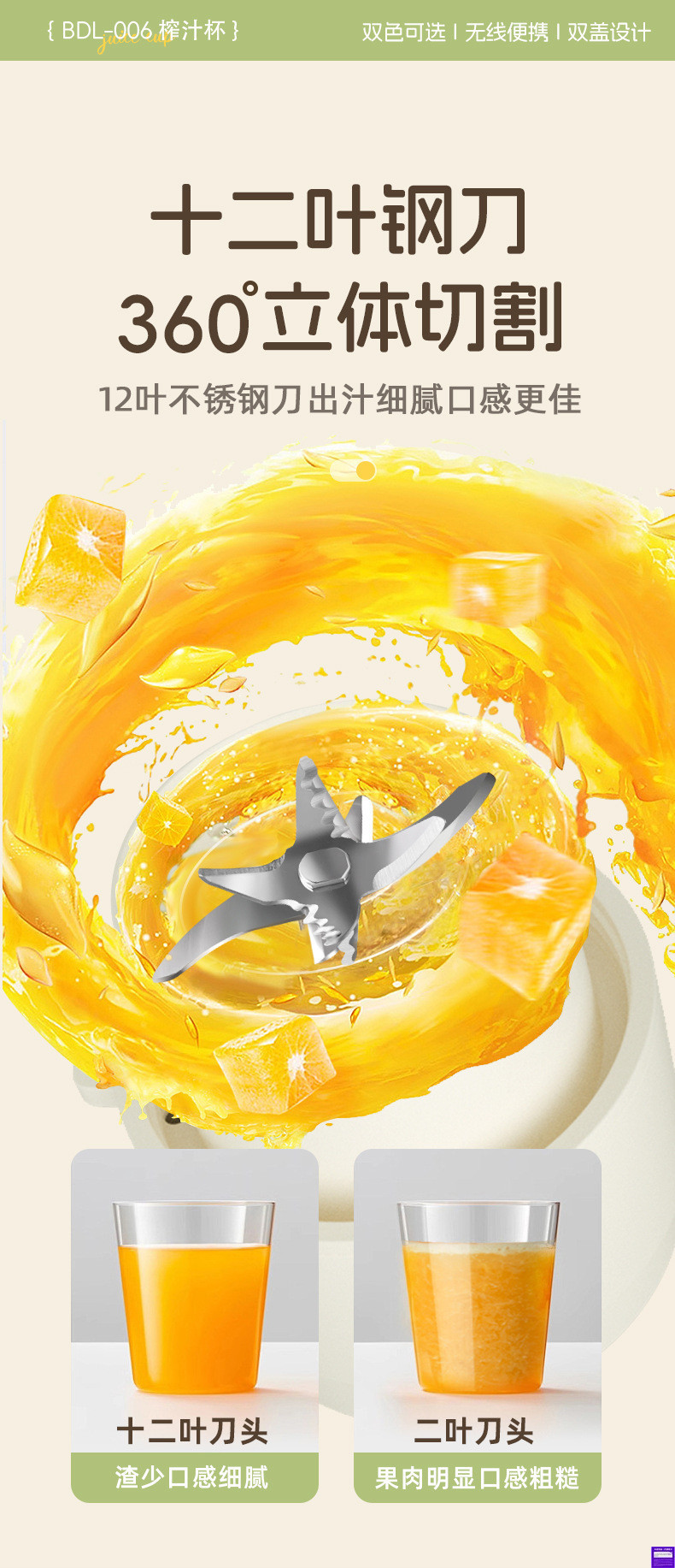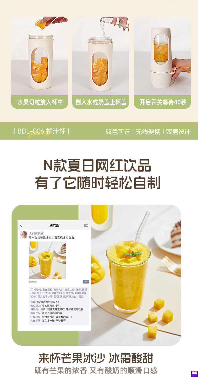 クロスボーダージューサー小型ポータブル家庭用多機能フライドフルーツジューサーワイヤレス電動ジューサーカップ