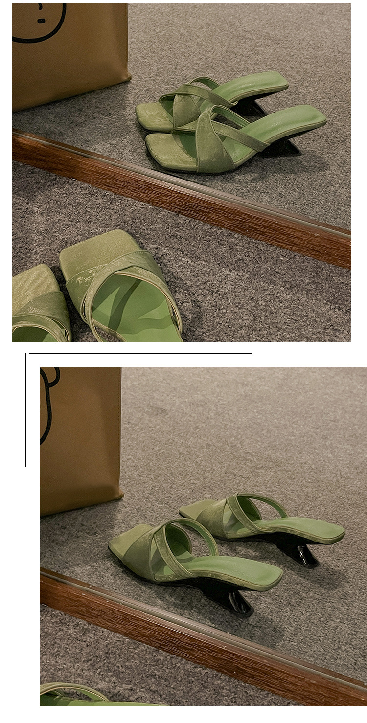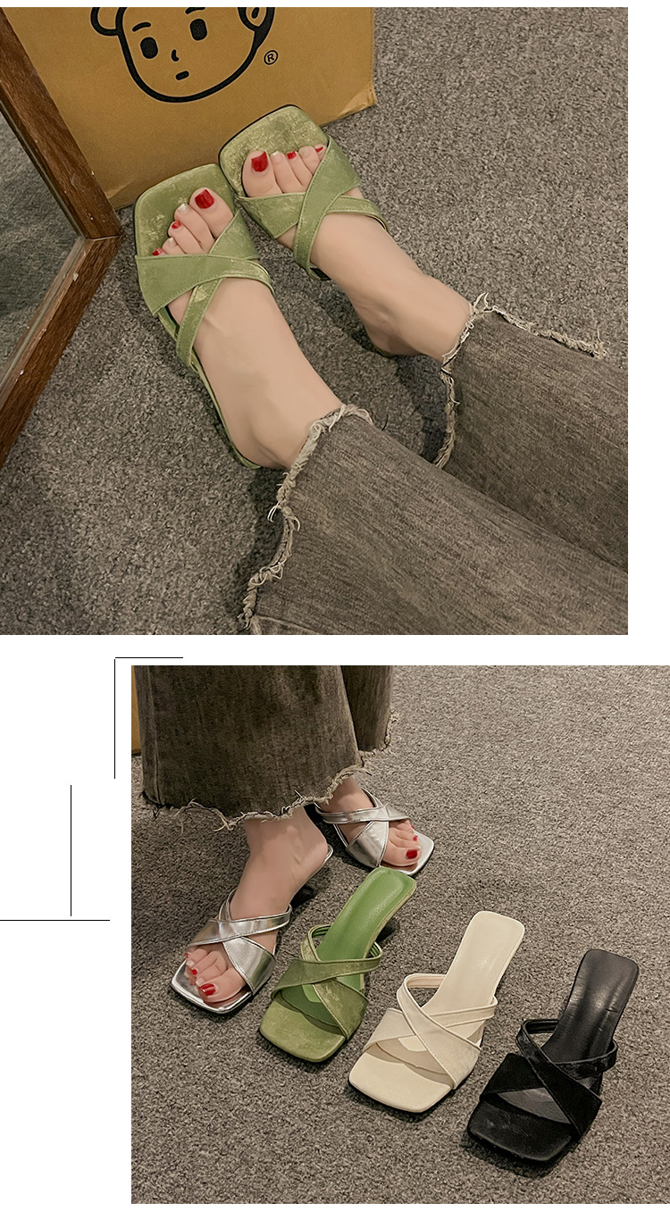 女性用ハイヒール 2025 夏の新スタイルフレンチニッチスクエアトゥ太いヒールワンストラップサンダルアウターウェア多用途スリッパ