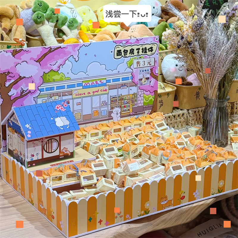 漫画のパンの家のペンダント3d立体樹脂のミニチュアは食事をしてミニシーンの装飾の置物のかばんのペンダントを遊びます。
