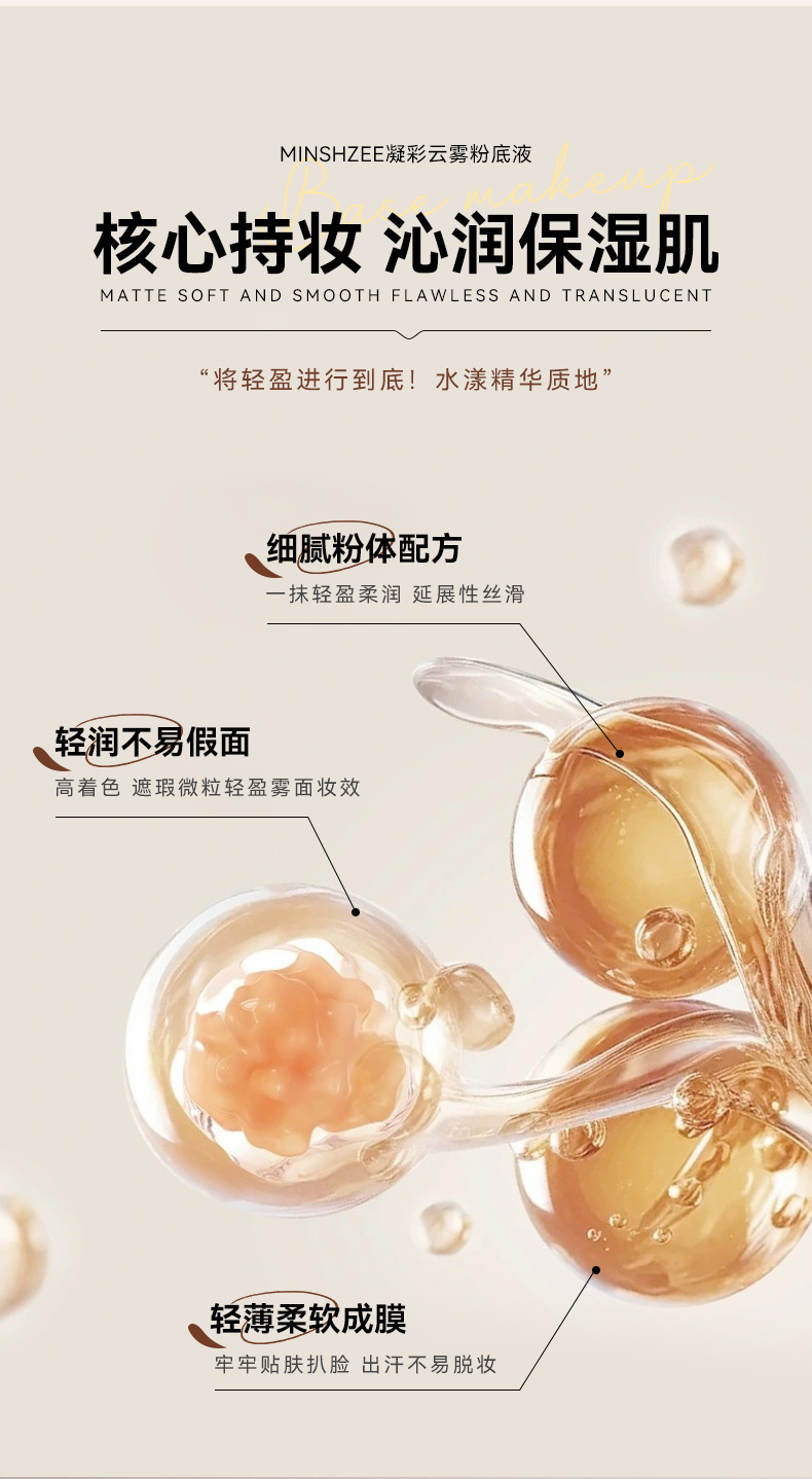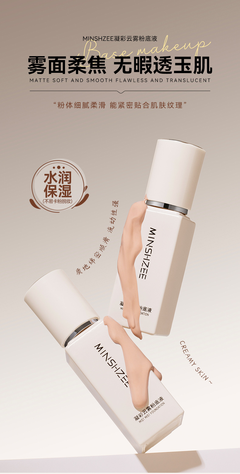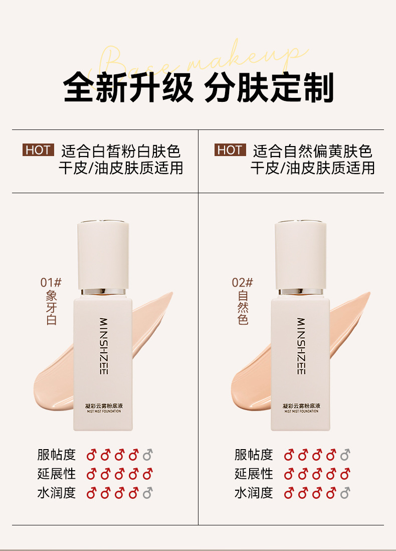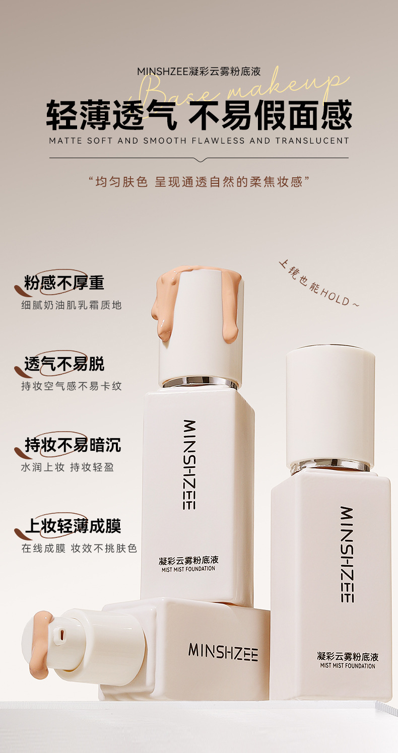 茗希芝粉底液遮瑕持久不易脱妆水润轻薄服帖持妆干油皮平价粉底液