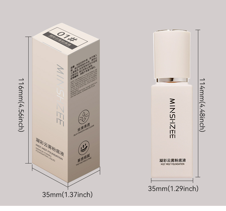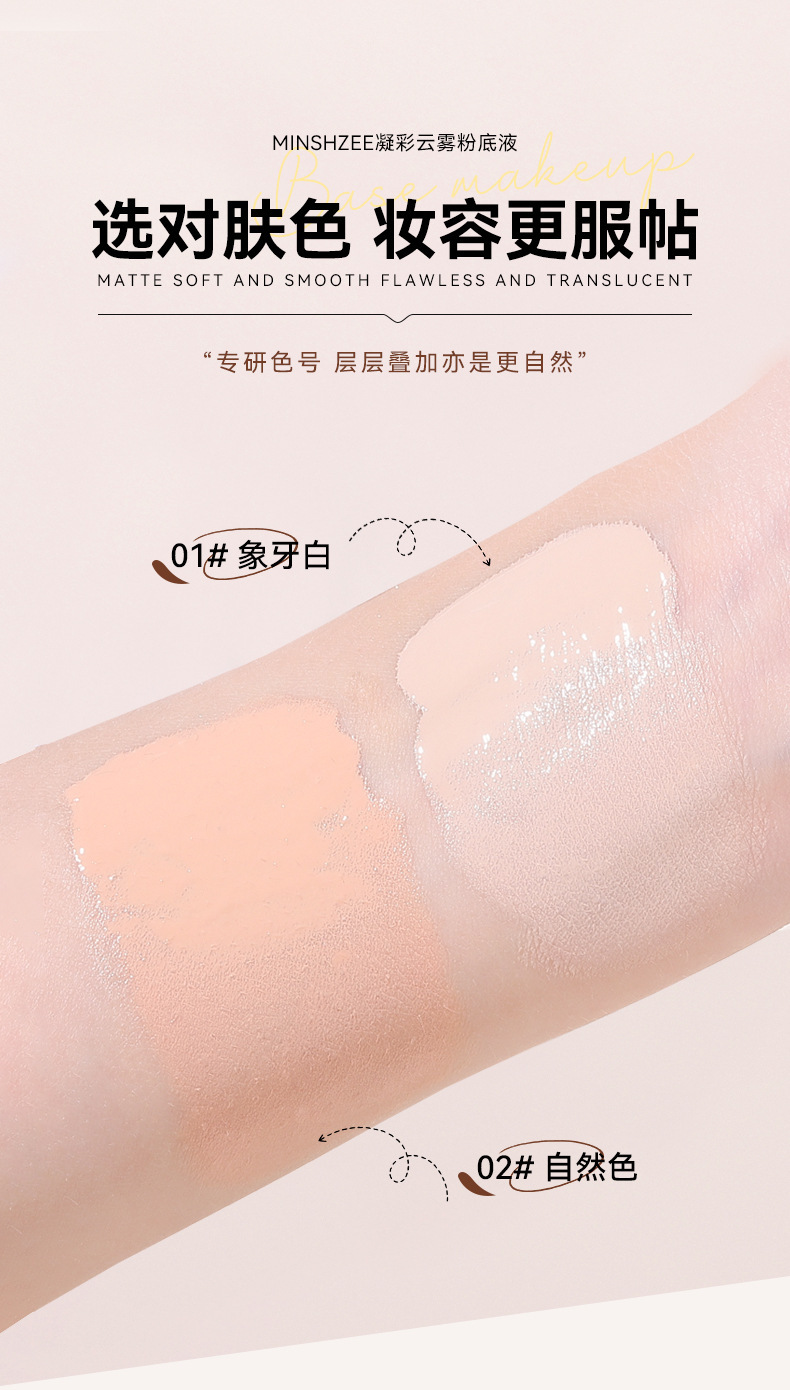 Ming Xizhi リキッド ファンデーション コンシーラー、長持ち、メイク落ちしにくい、軽くて長持ちするメイクアップ ベース、乾燥肌と脂性肌の女性向けのクロスボーダー リキッド ファンデーション