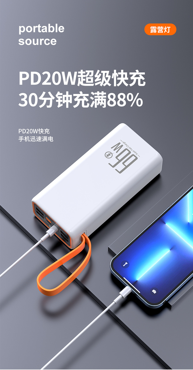 クロスボーダー充電宝50000ミリアンペア66W超高速充電大容量屋外キャンプ灯移動電源