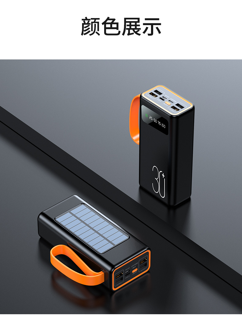 国境を越えた現物販売 ソーラー充電式50000mAh大容量モバイルバッテリー ポータブル内蔵ケーブル付き屋外用モバイル電源