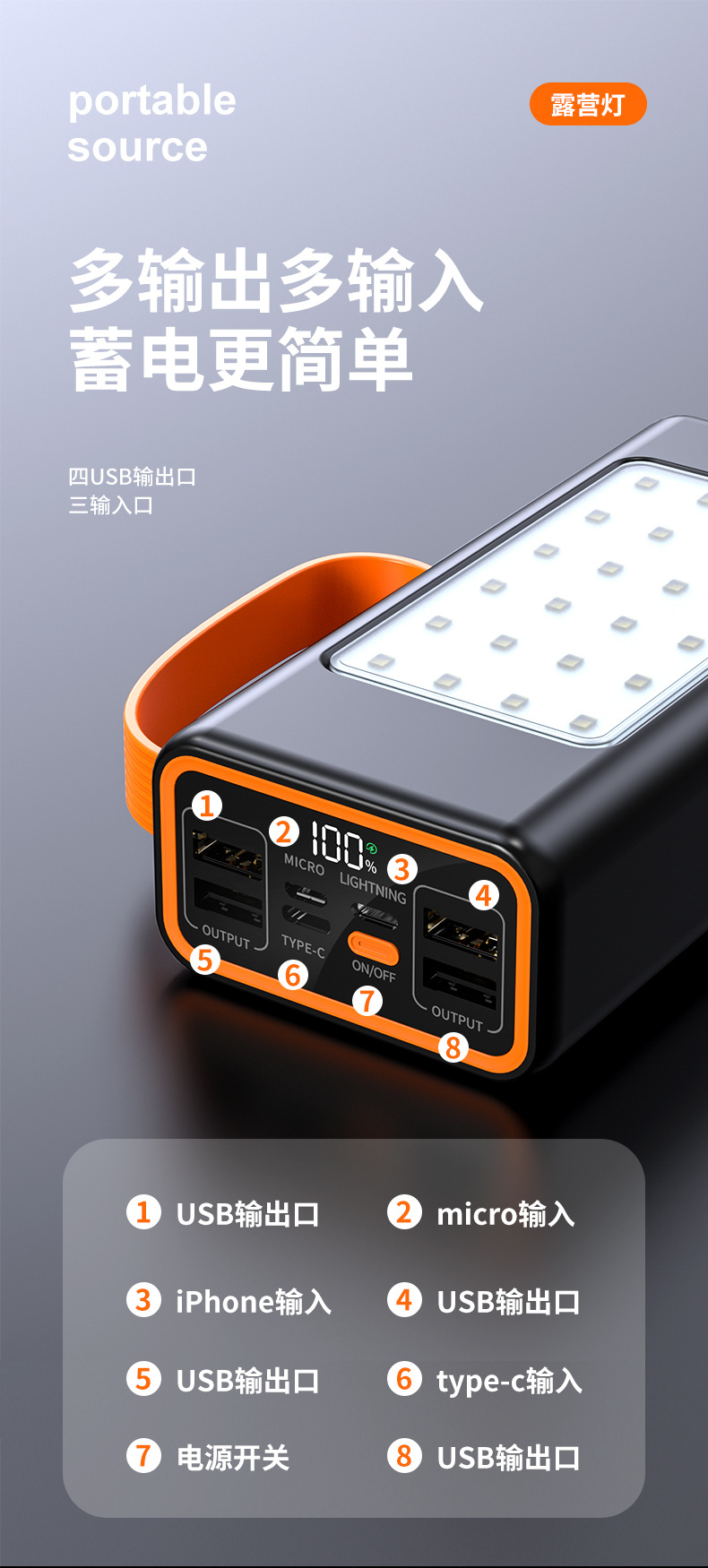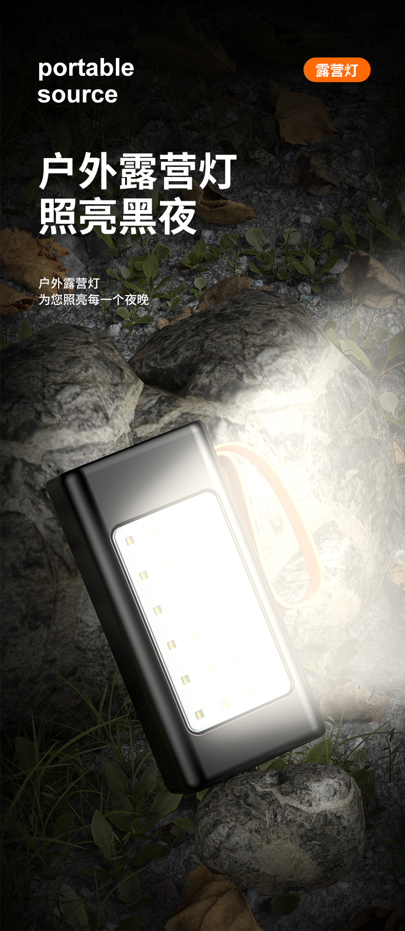 跨境工厂批发超大容量充电宝50000毫安户外露营灯便携带移动电源