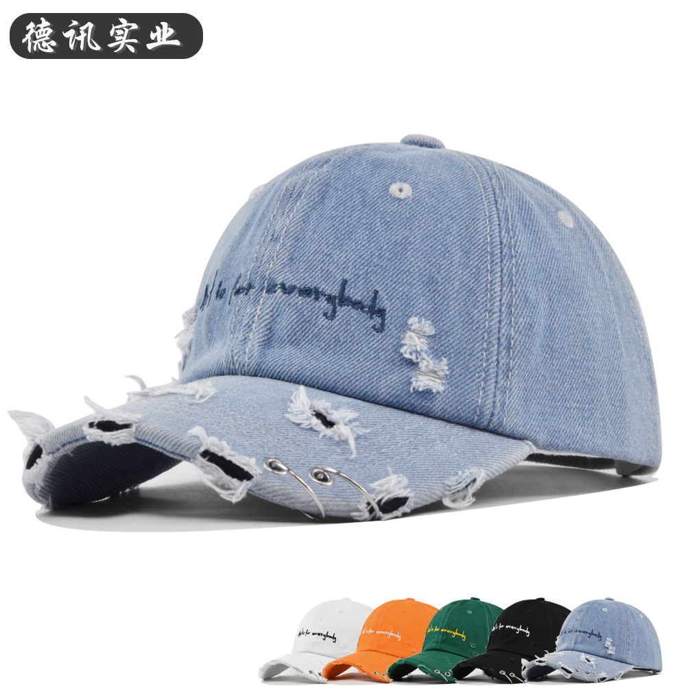 跨境复古破洞小绣花棒球帽破洞做旧立体刺绣鸭舌帽个性铁环帽子
