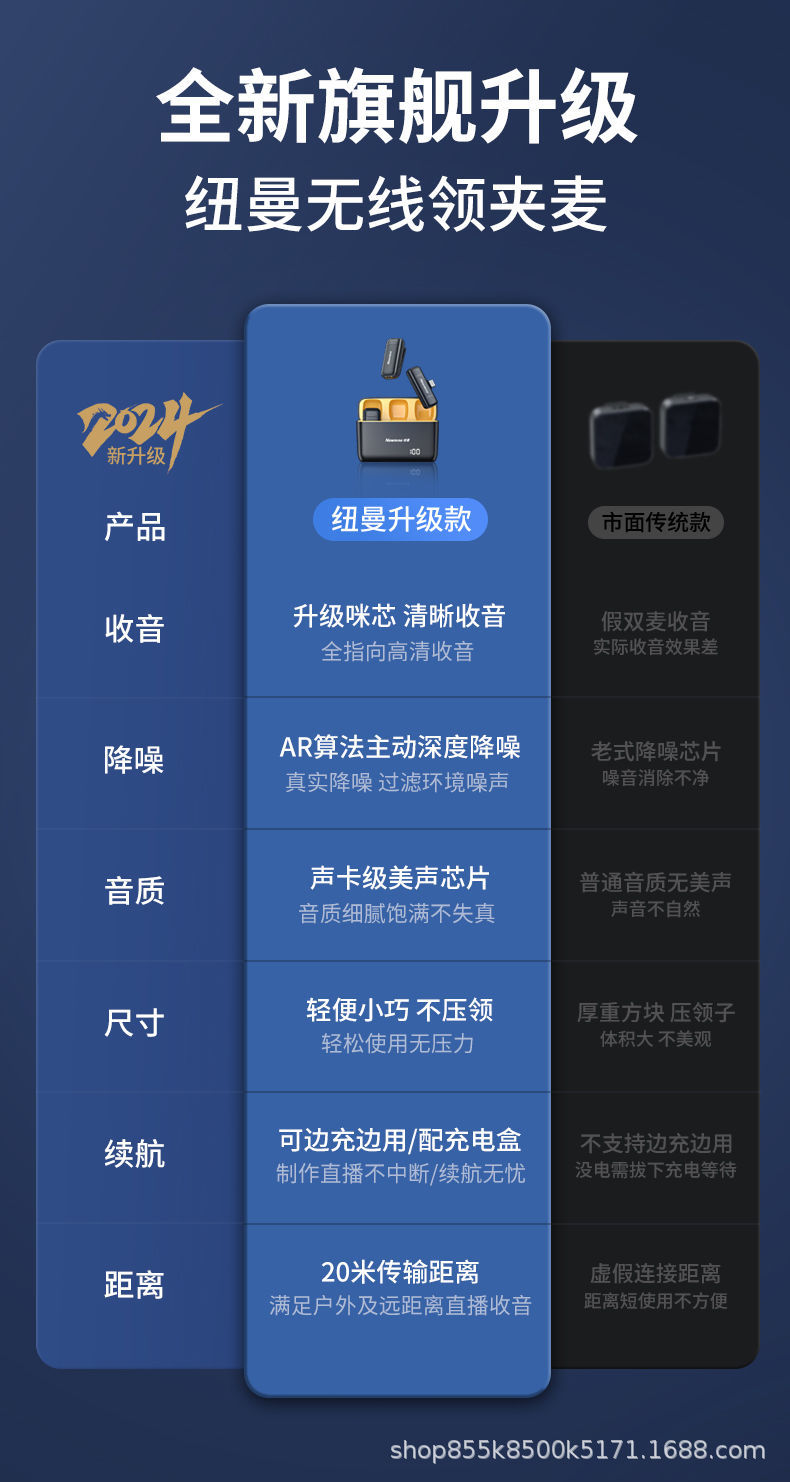 纽曼MC205无线麦克风领夹式户外直播短视频vlog采访录音降噪话筒