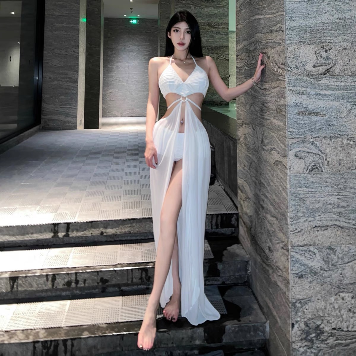 白い分体ビキニ水着女性2点セット温泉休暇小胸セクシーギャル大胸高級感海辺