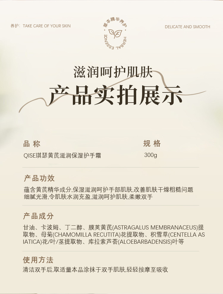 QISE Qi Se Astragalus 保湿ハンドクリーム 秋冬用 保湿、保湿、乾燥防止、剥離、荒れ防止