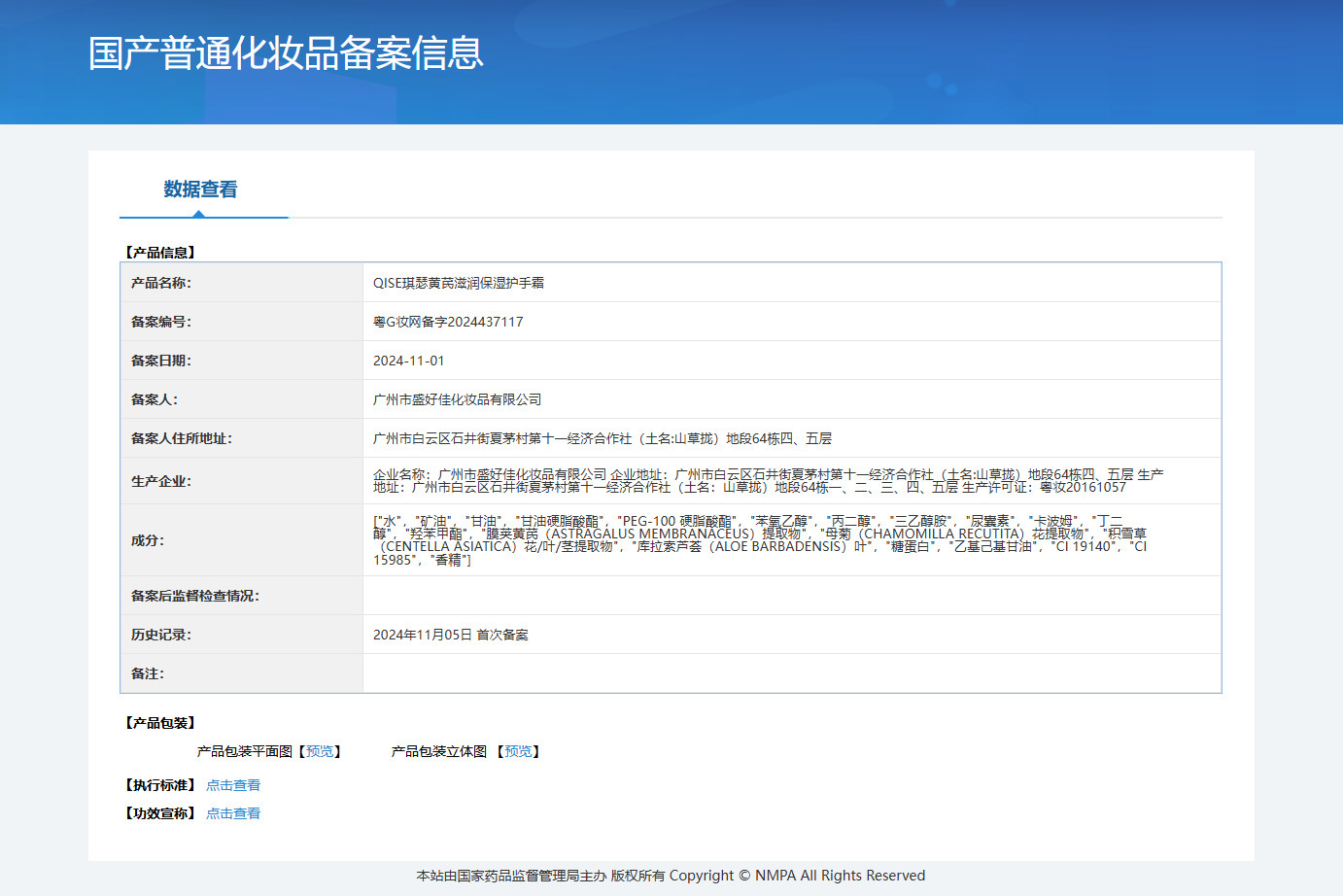 非特殊化粧品登録認証番号 広東Gメイクアップネットワーク準備番号 2024437117