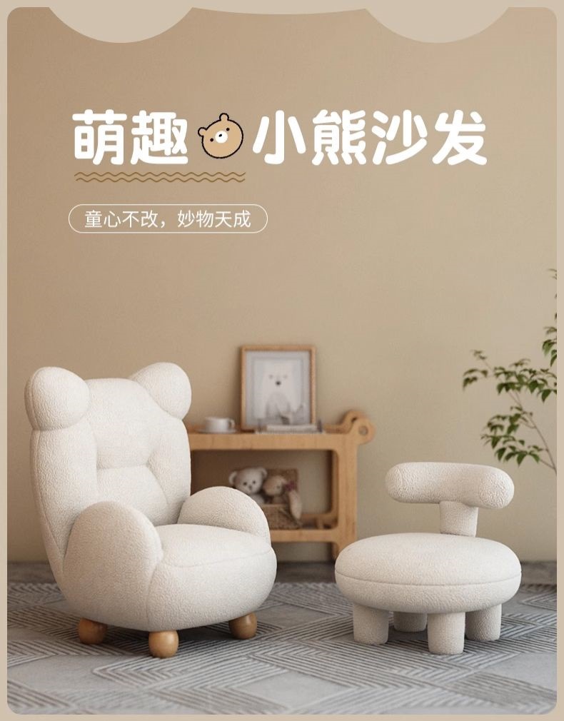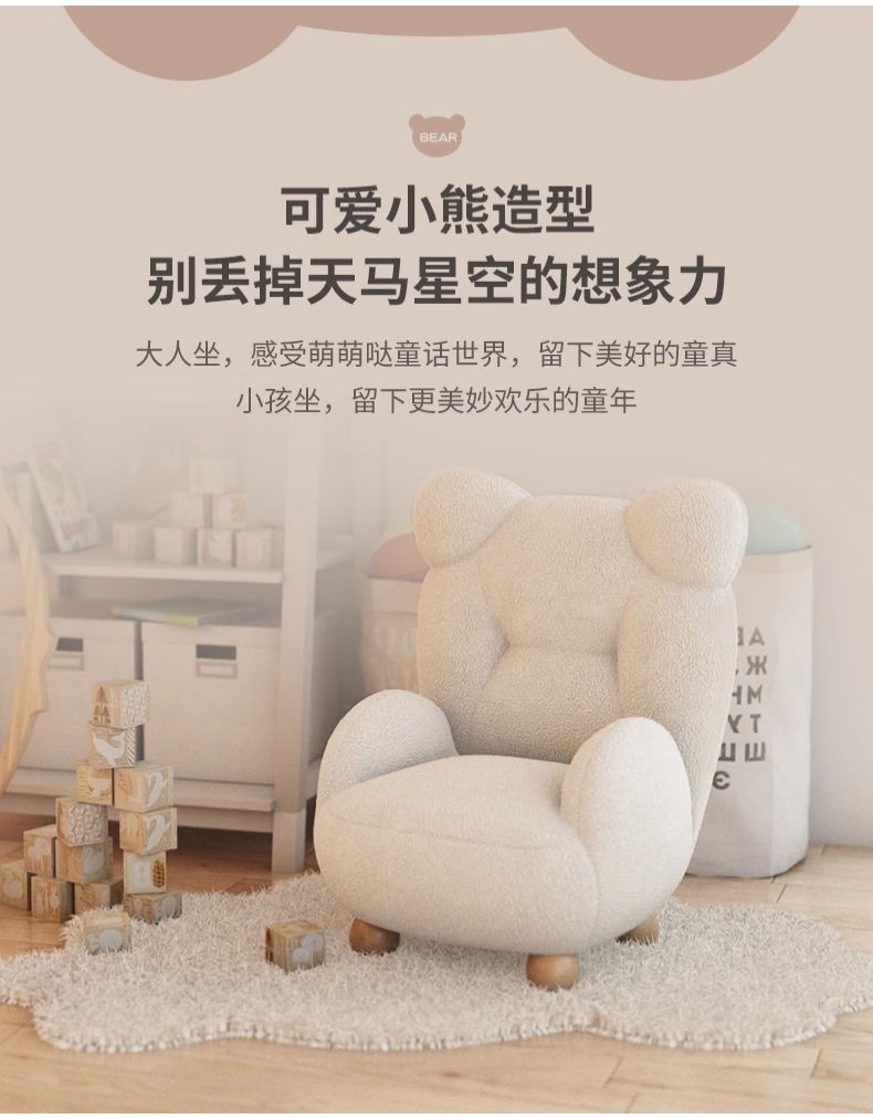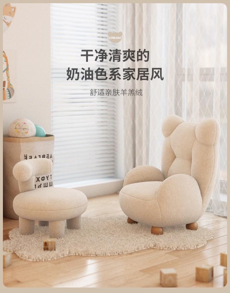 子供用ソファ、クマの小さなソファ、かわいい赤ちゃんのシングル漫画シート、ミニ怠惰なスツール、ラムウールの椅子
