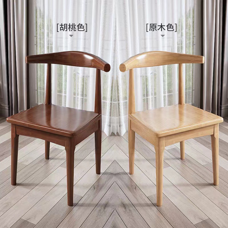 無垢材のダイニングチェア家庭用北欧背もたれスツール椅子賃貸住宅シンプルな寝室ライト高級現牛角椅子