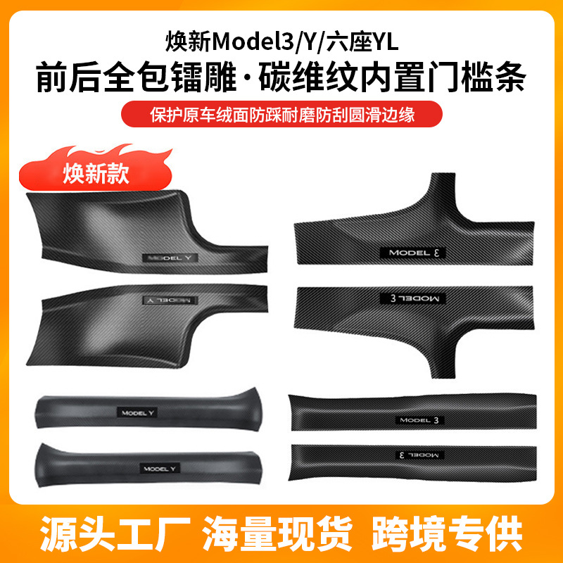 6人乗りの新型YLドアシルストリップ、カーボンファイバーパターンのモデル3/Yテスラ用フロントおよびリアドアシルプロテクターに適しています。