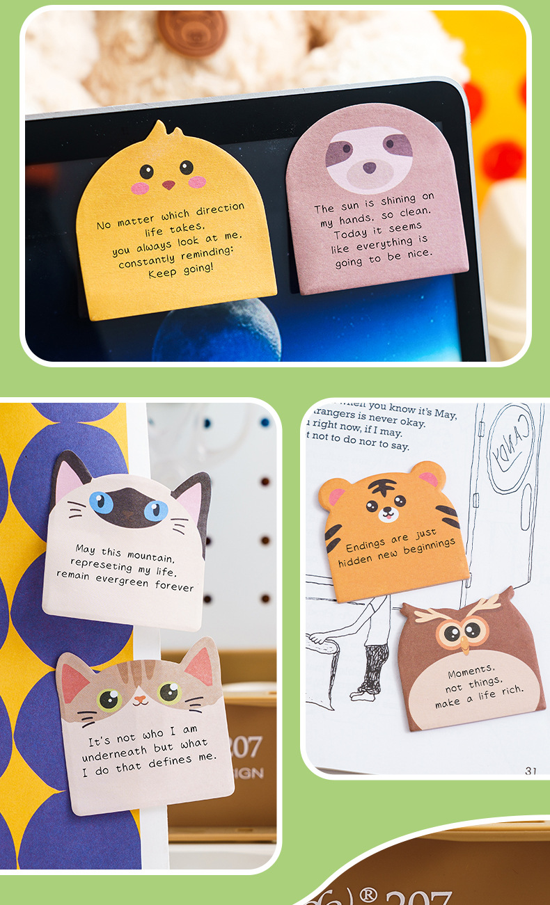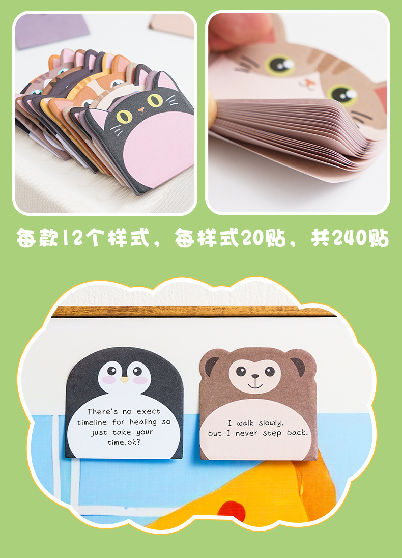 跨境卡通动物可爱萌物异形便利贴创意便签本贴学生记录强粘性猫咪