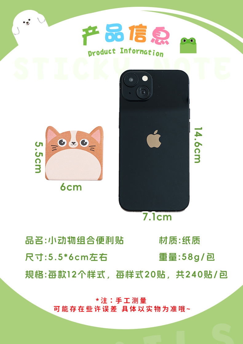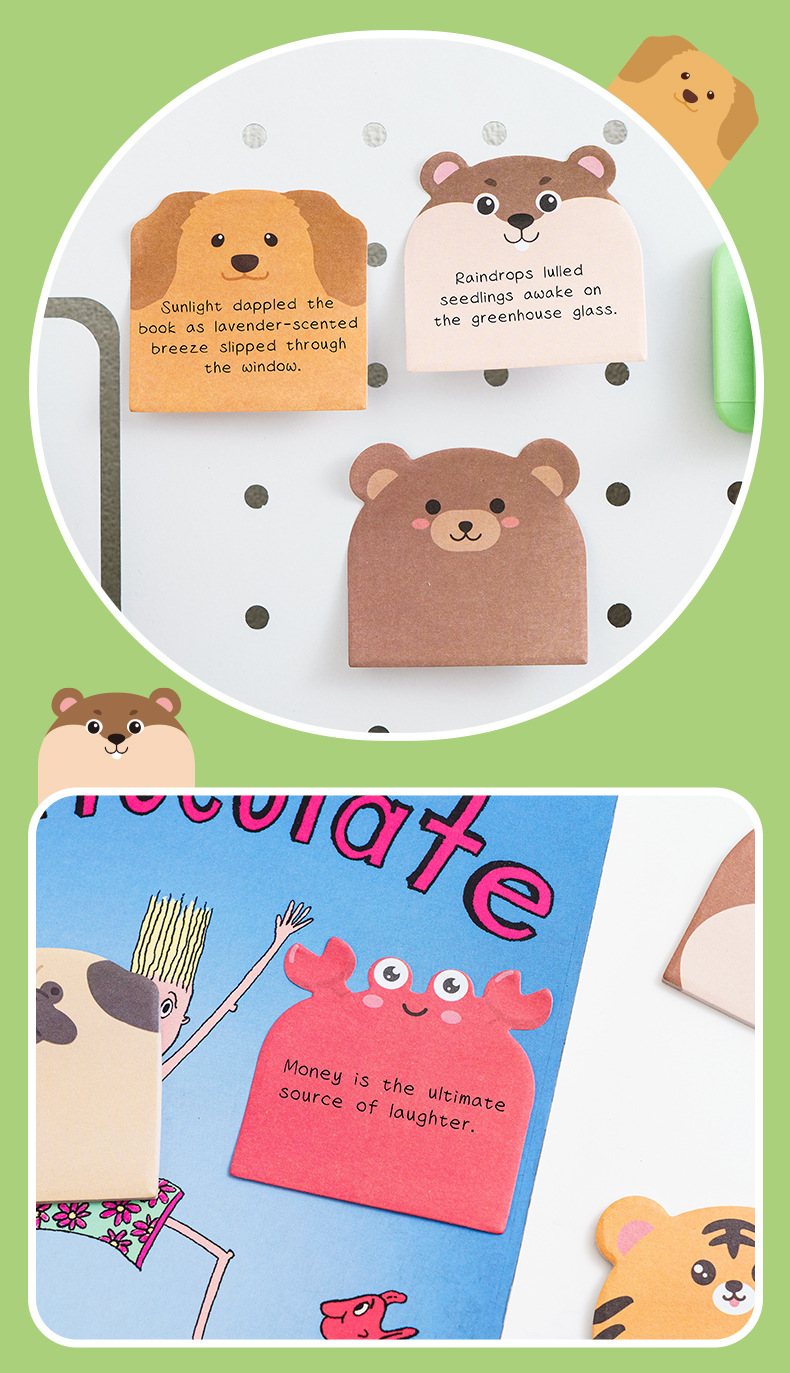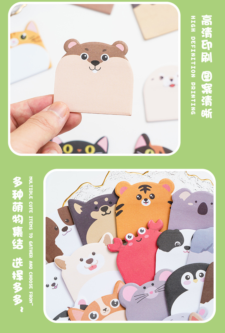 小動物組み合わせ付箋、かわいい漫画n回ステッカー、特殊な形、見栄えの良いins、粘着付箋カスタマイズ