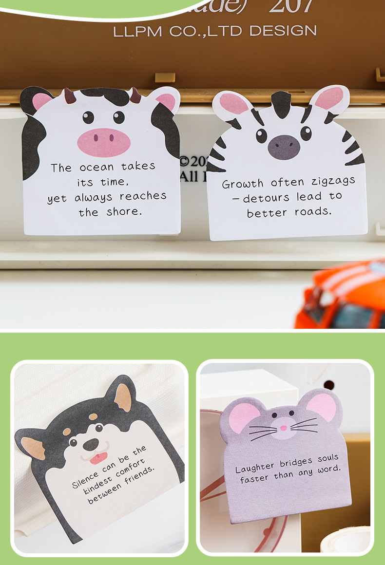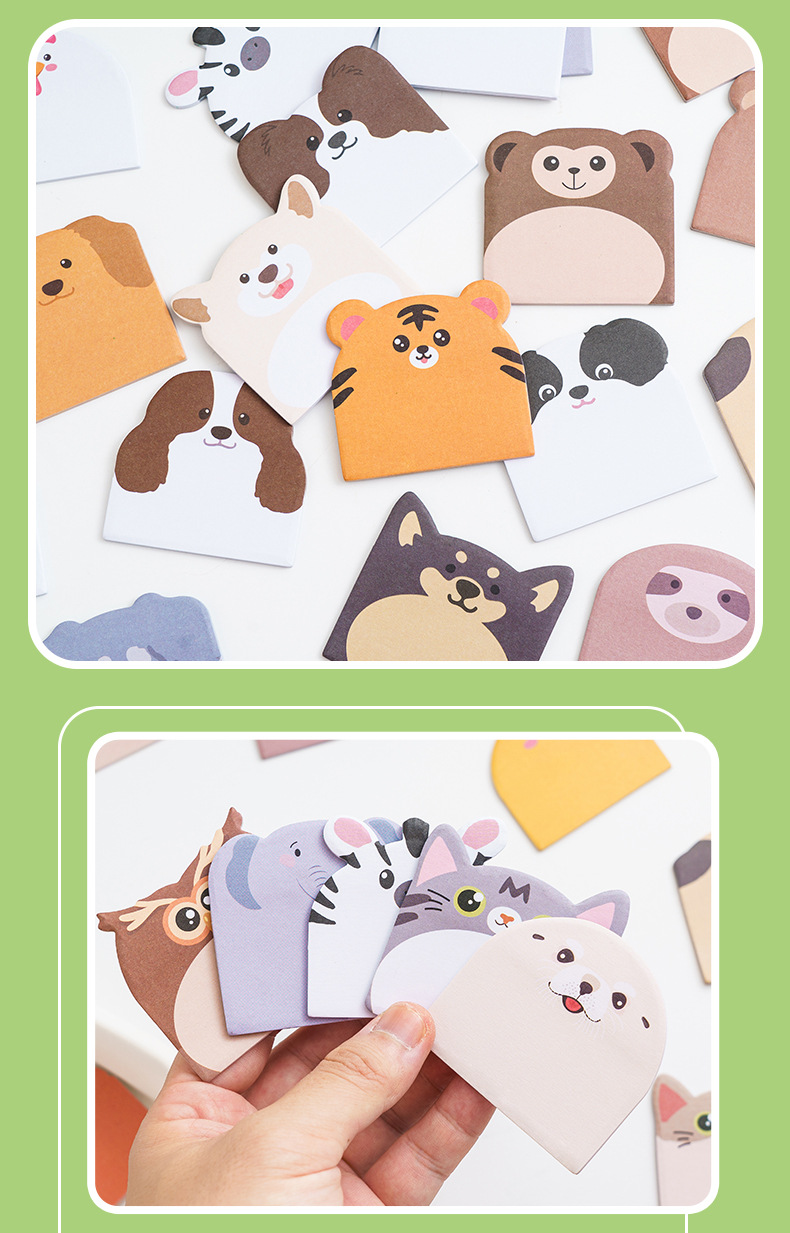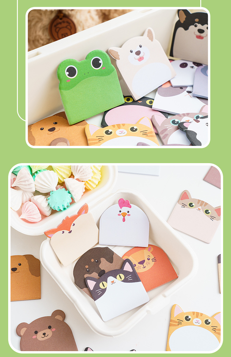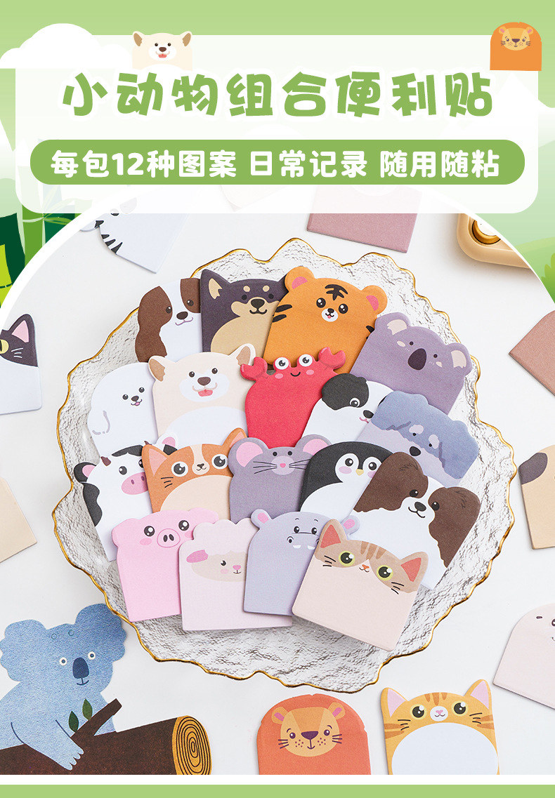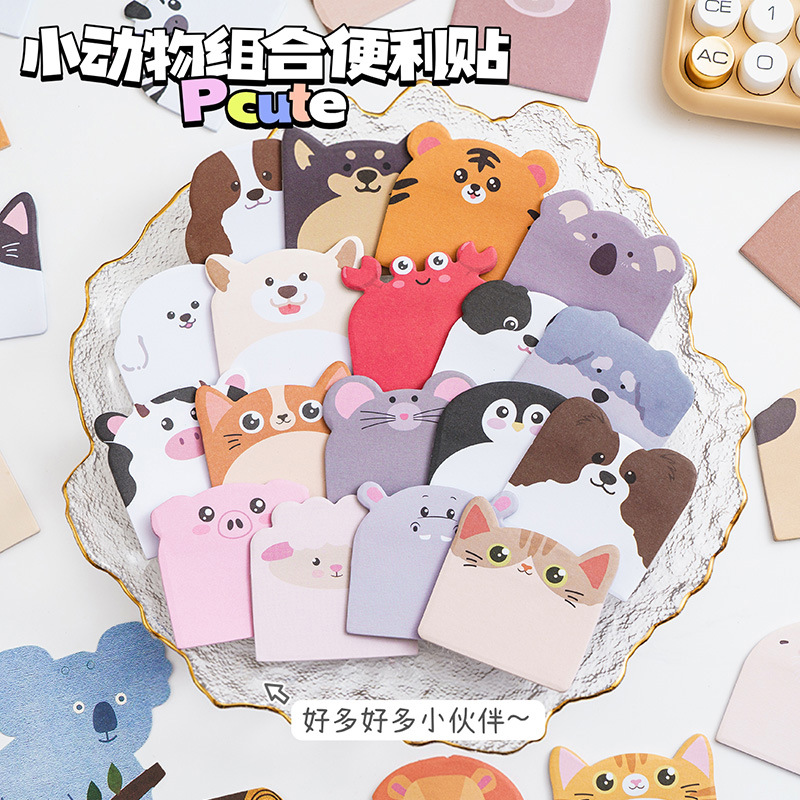 可爱小动物组合便利贴高颜值卡通异形便签纸留言记事n次贴有粘性