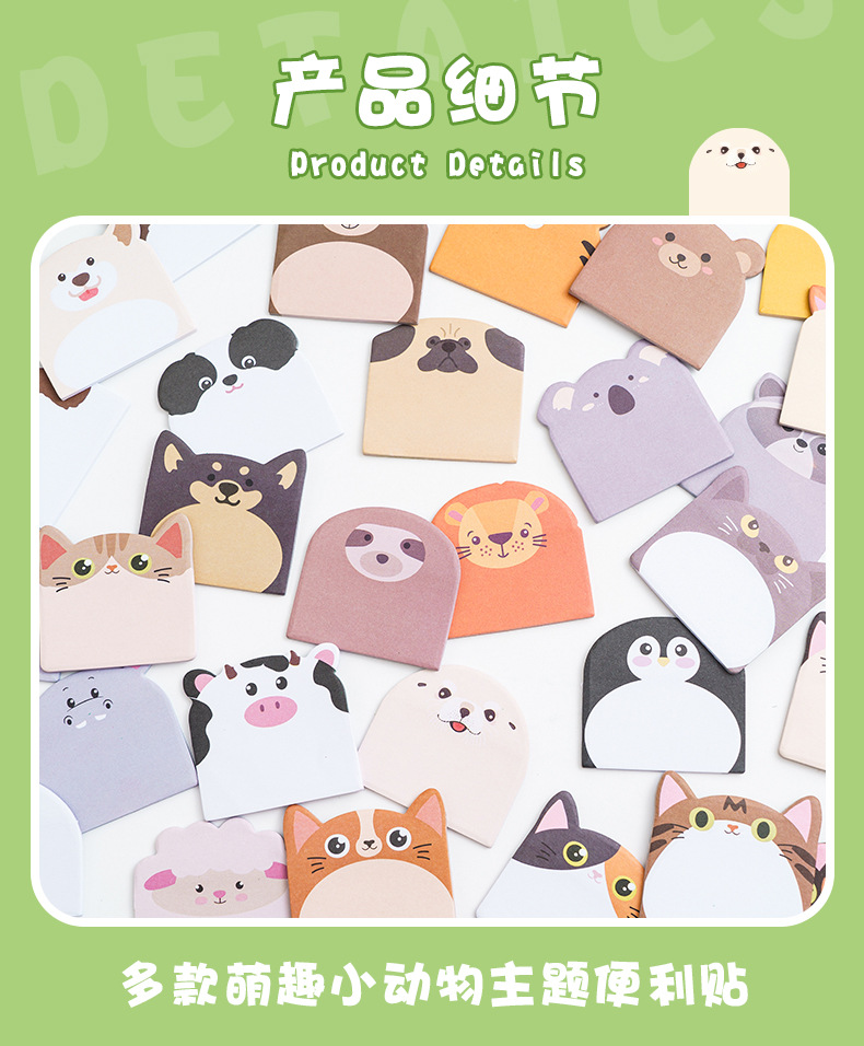 可爱动物便利贴 学生笔记标签贴纸卡通备忘便签贴画办公标记书签