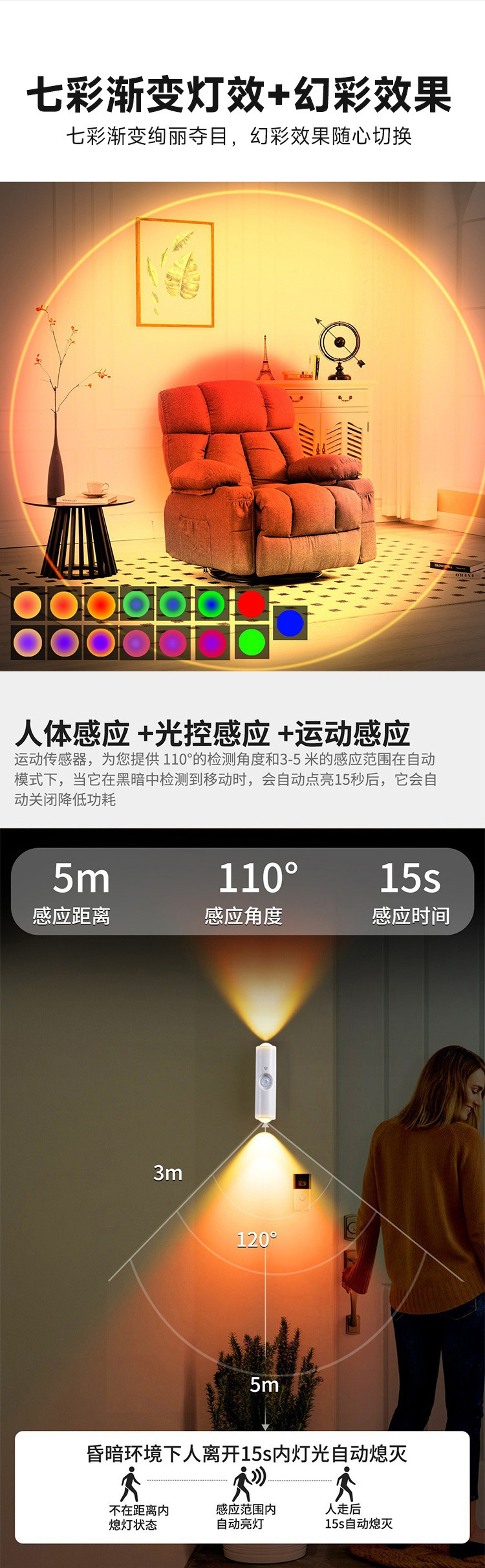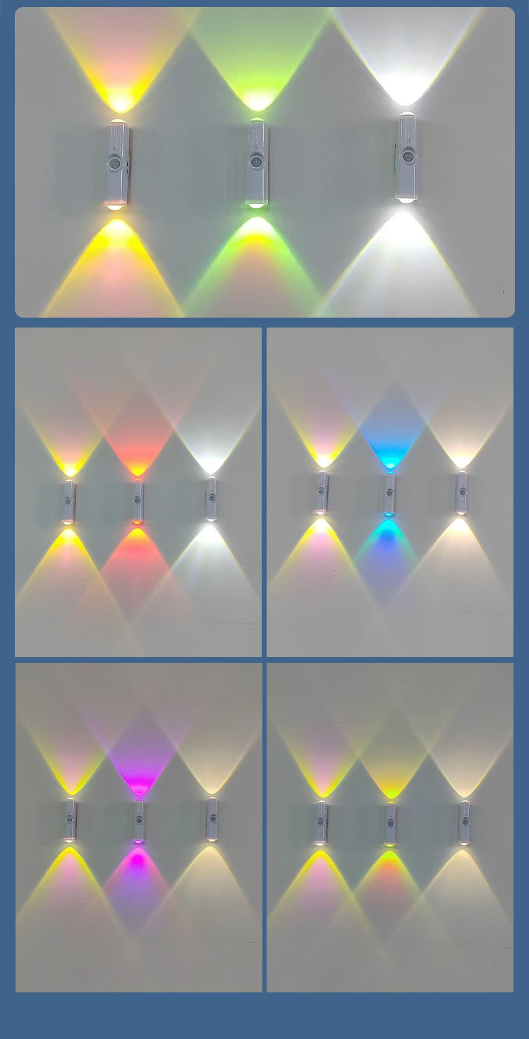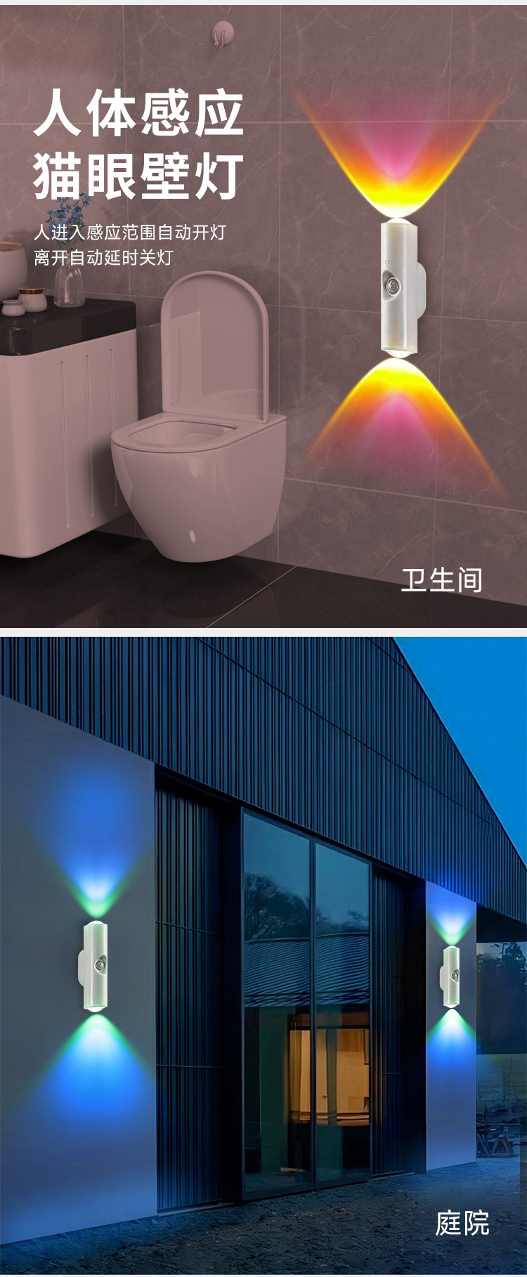 双头猫眼壁灯RGB氛围灯小夜灯床头灯七彩渐变磁吸感应灯人来即亮