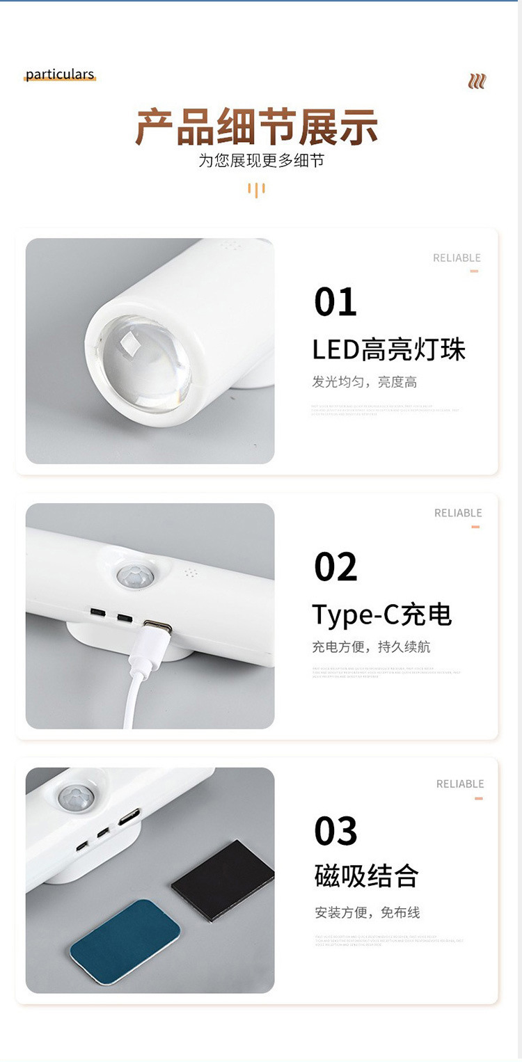 LED キャビネットライト充電式人体誘導ライトストリップワードローブライト寝室睡眠寮ナイトライト磁気ストリップ