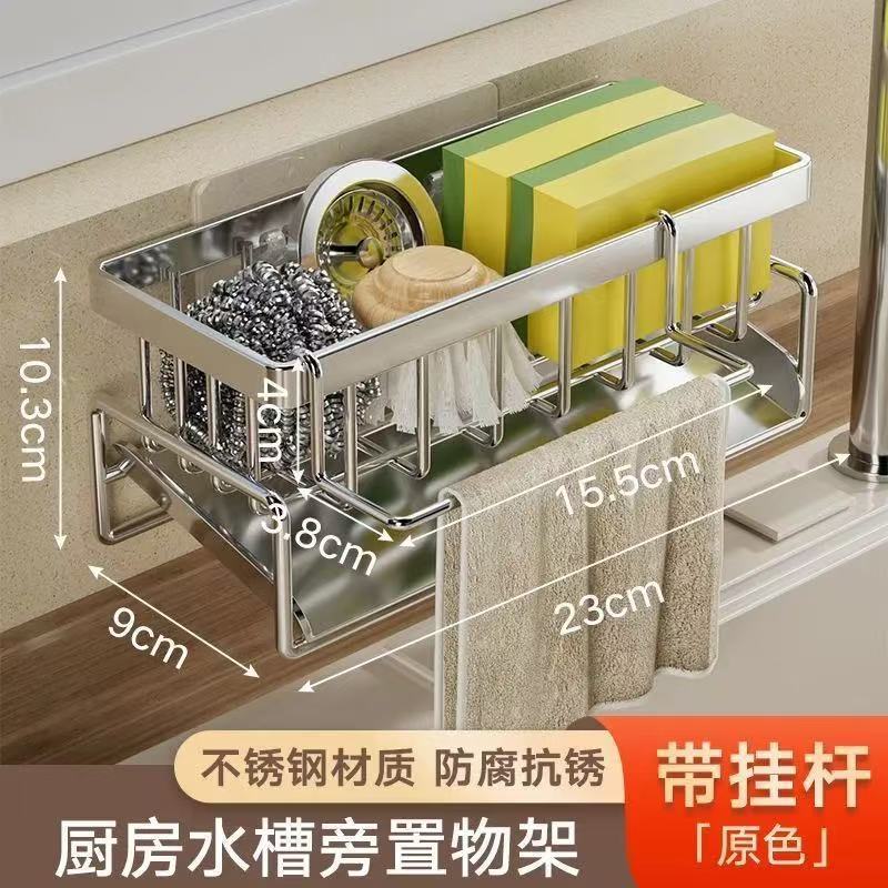 304不锈钢水龙头置物架厨房用品水池水槽收纳洗碗海绵抹布沥水架