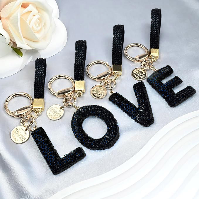 26个字母跨境创意镶钻钥匙扣 个性时尚包包挂件 潮流汽车钥匙挂饰