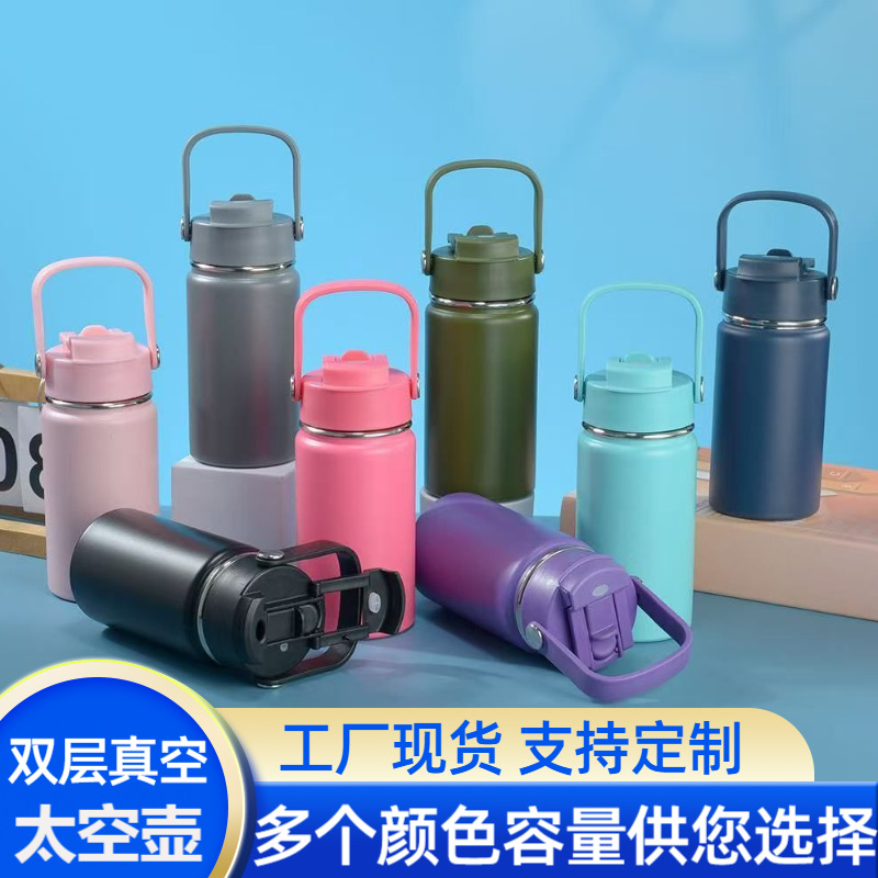 304ステンレス製二重真空断熱水筒、屋外用二重飲み口、携帯用ハンドル、スポーツ用吸い口付きカップ、ストロー付き