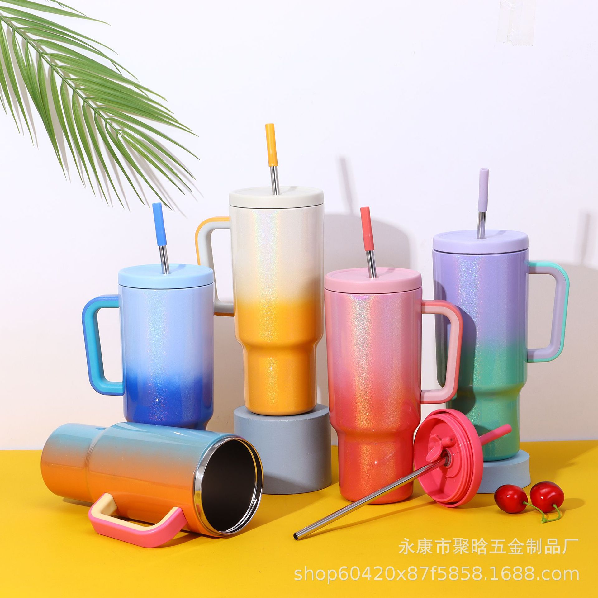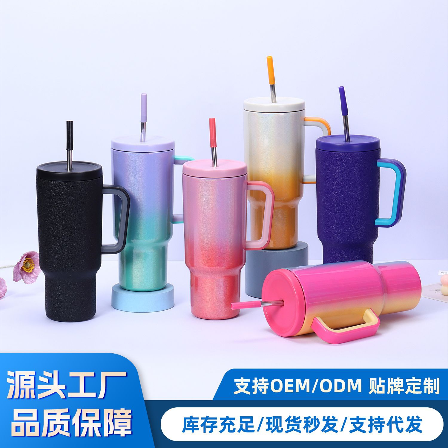 彩虹漆40oz冰霸杯不锈钢巨无霸保温杯车载大容量带手柄吸管汽车杯