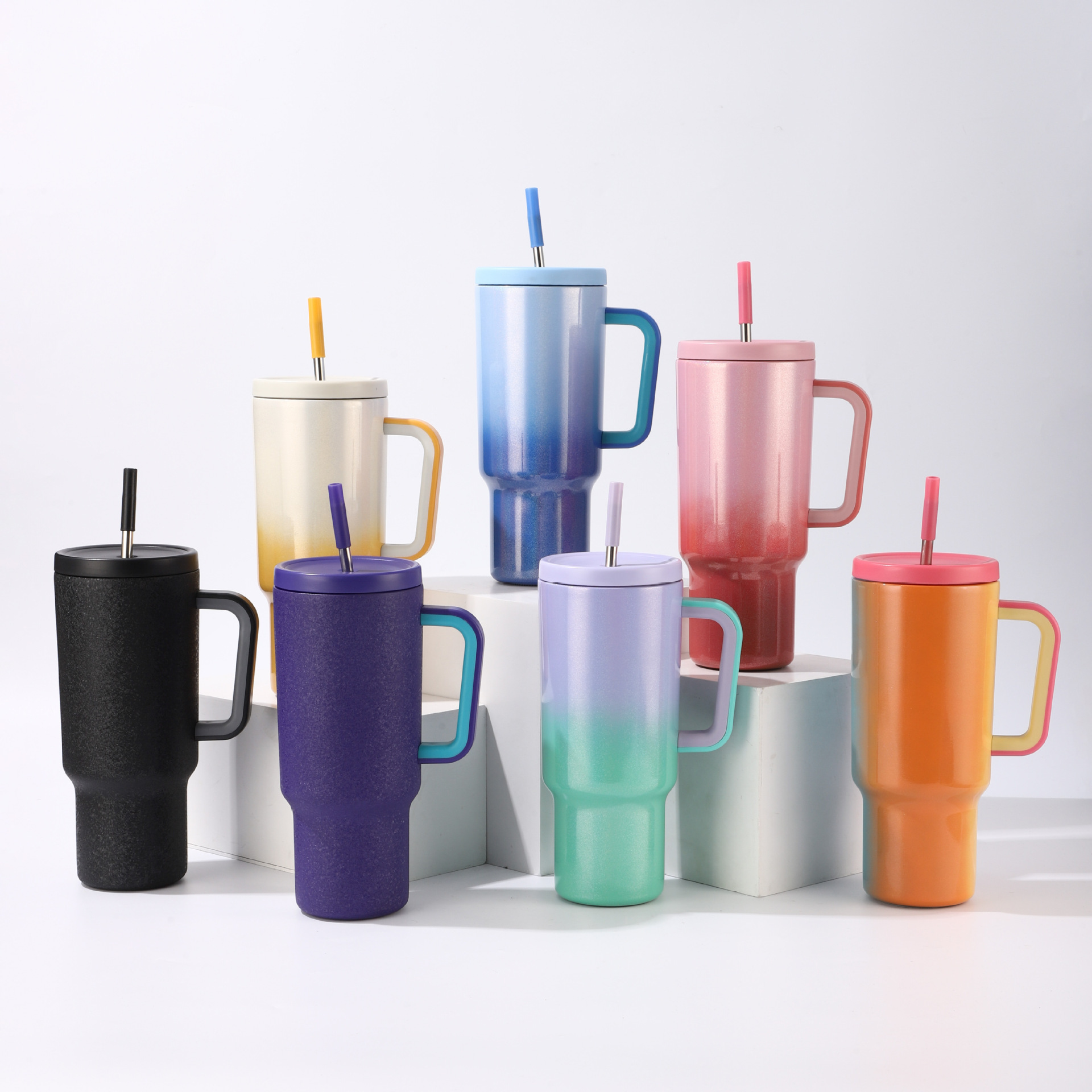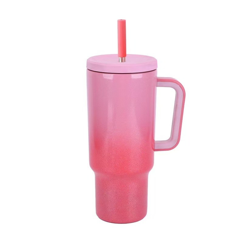 跨境真空彩虹漆40oz吸管杯304不锈钢保温杯车载双层便携冰霸杯