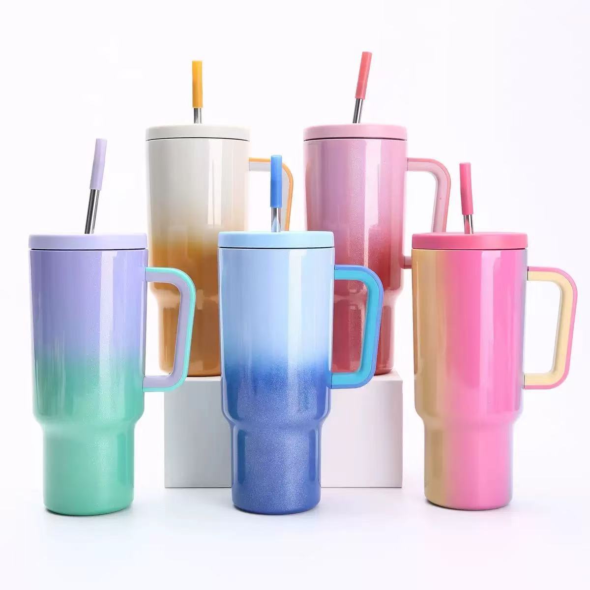 国境を越えた高価値のグラデーションカラーアイスカップ 304 ステンレス鋼断熱カップ大容量ストローカップポータブルカーカップ