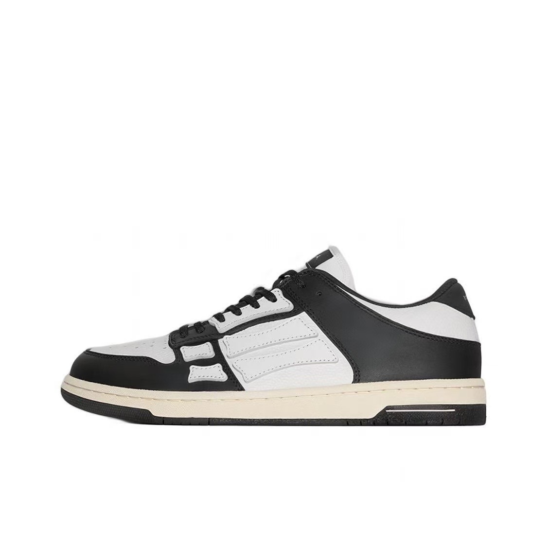 男性と女性のための新しい黒と白の同じスタイルのボーンスポーツとカジュアルシューズ、多用途のワンボと同じスタイルのレイヤードレザートレンディスニーカー
