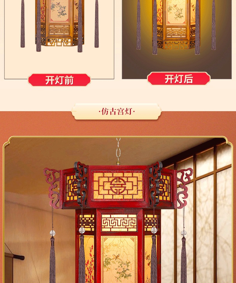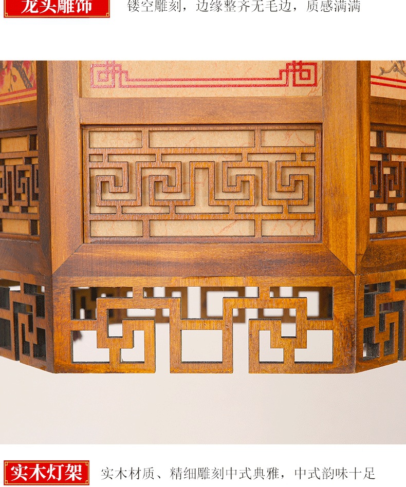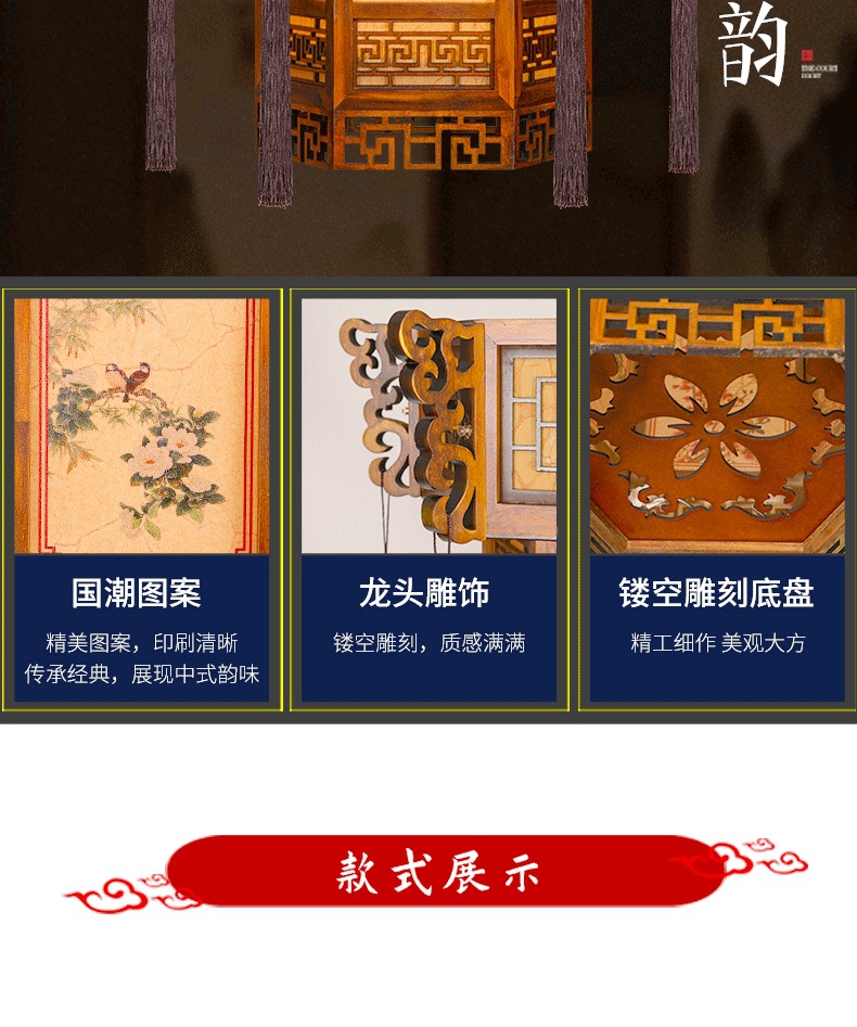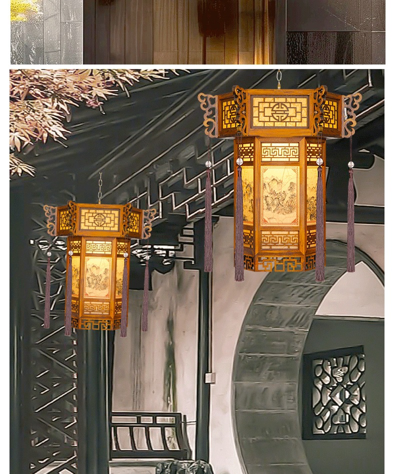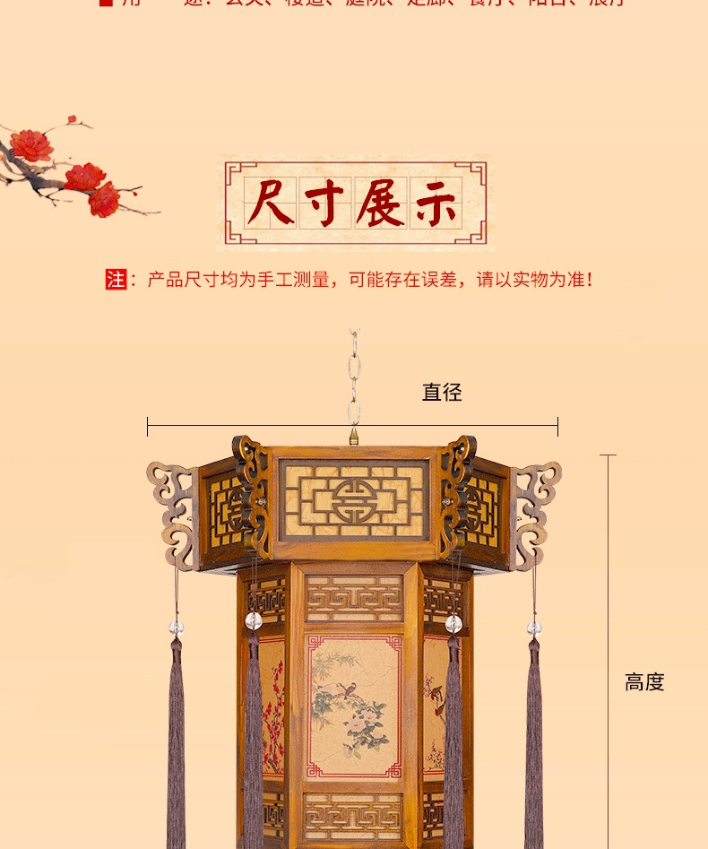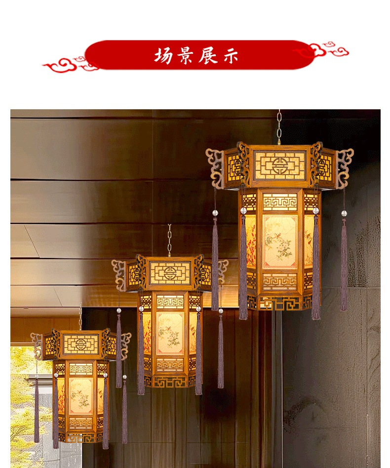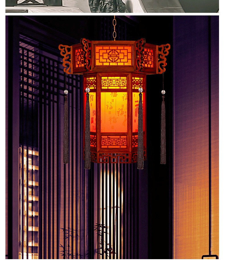 無垢材宮灯 ホテル別荘六角形アンティーク宮灯 祠寺院無垢材吊り下げランプ 新中式梅樺照明