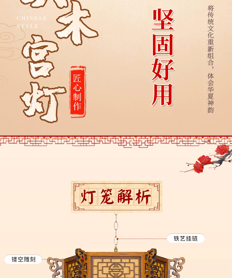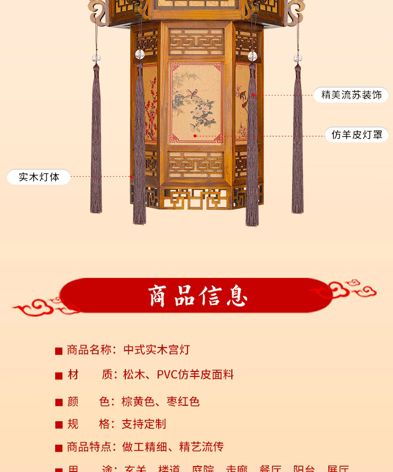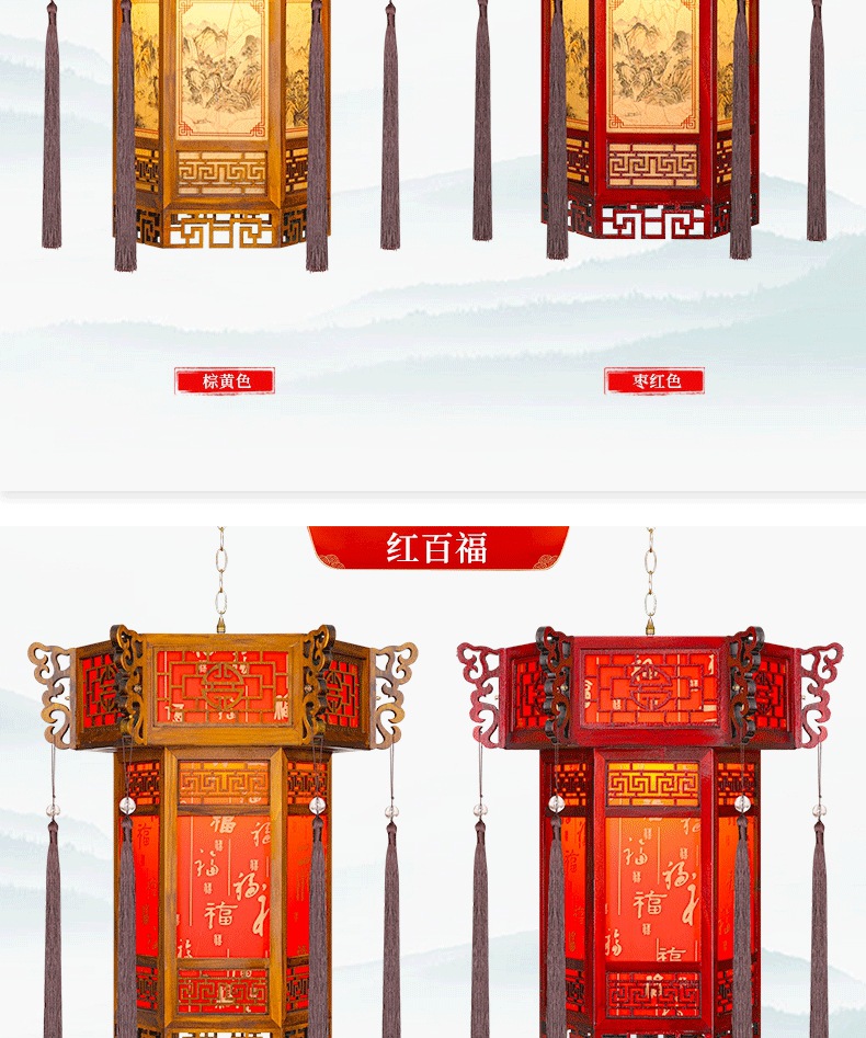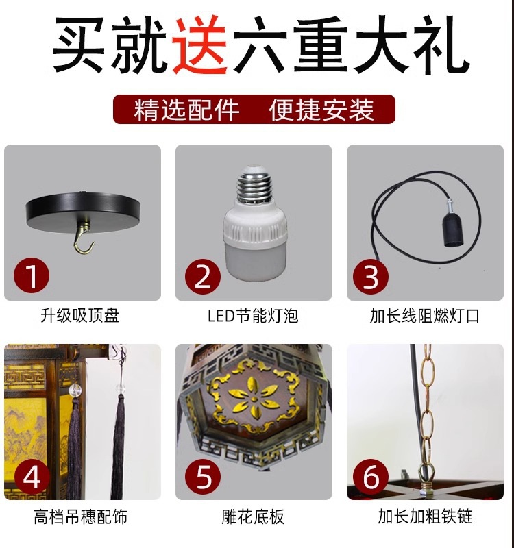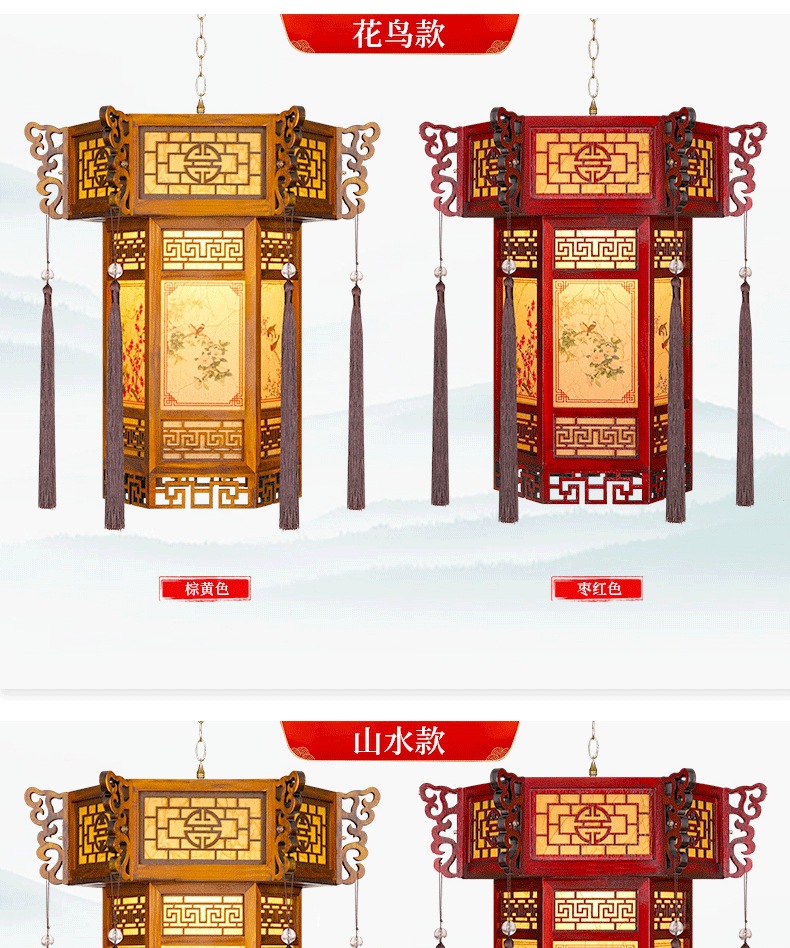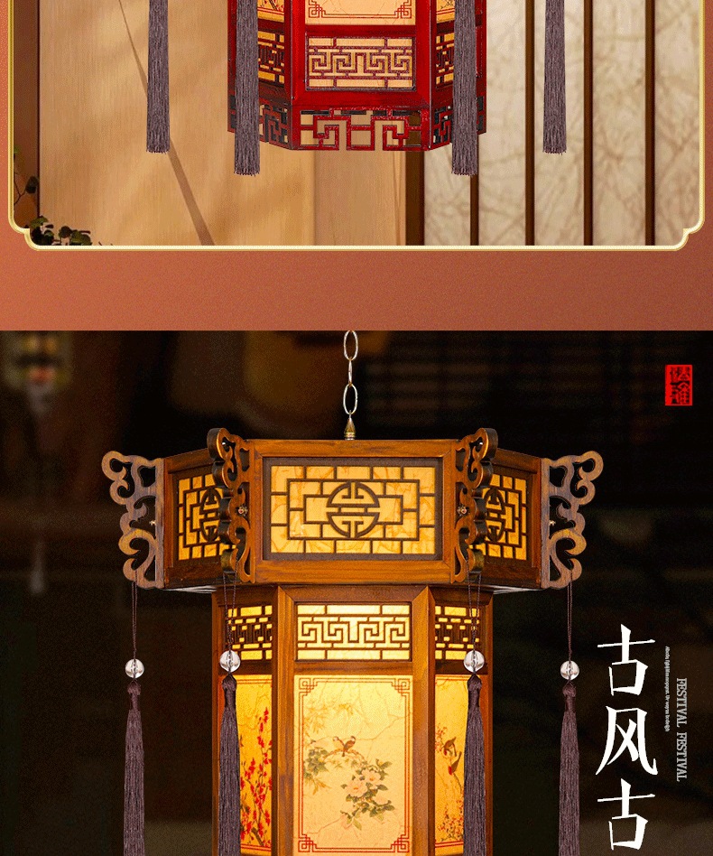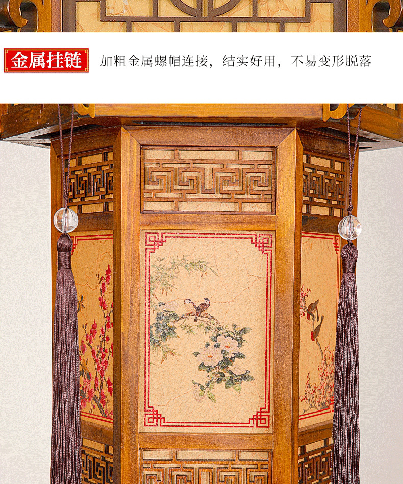 無垢材宮灯 ホテル別荘六角形アンティーク宮灯 祠寺院無垢材吊り下げランプ 新中式梅樺照明