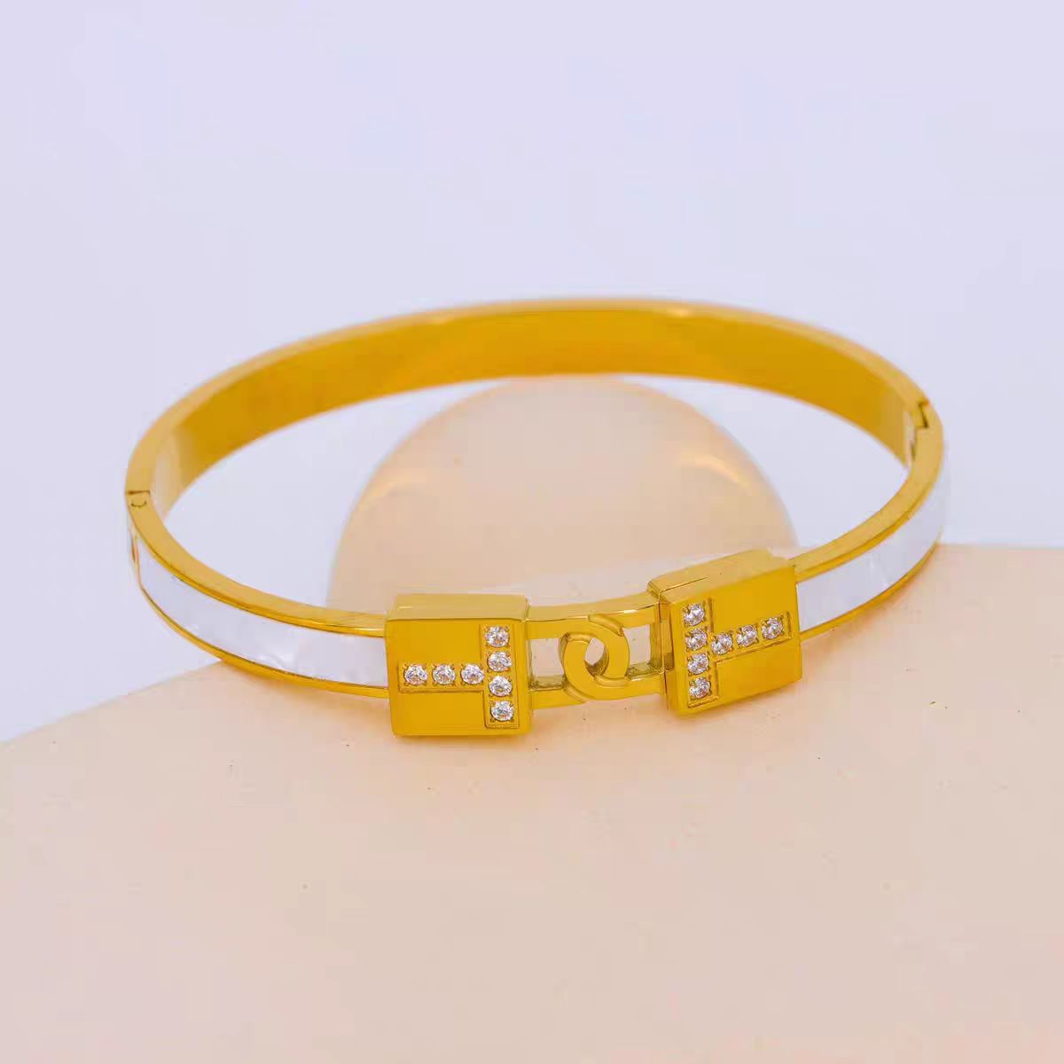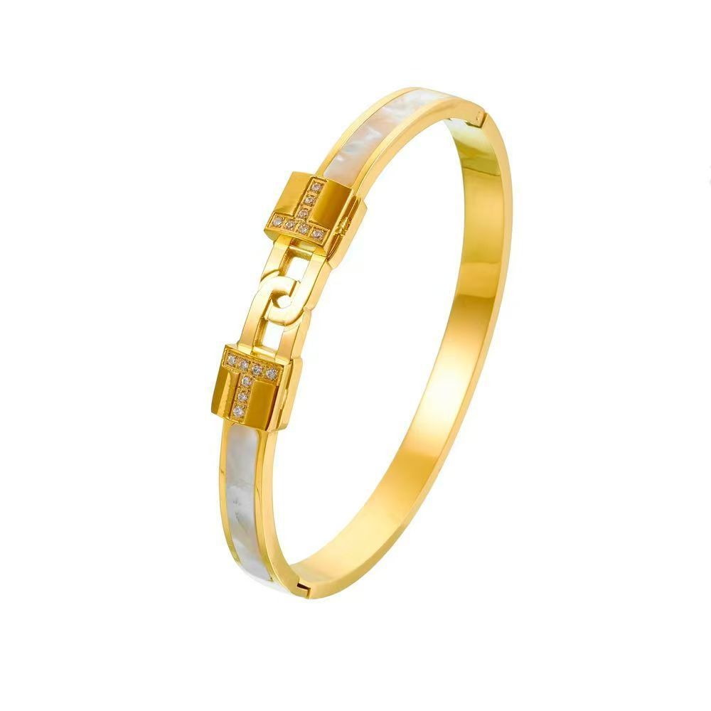 天然贝母H字母手手镯女ins日韩冷淡风小众设计钛钢掉色手环