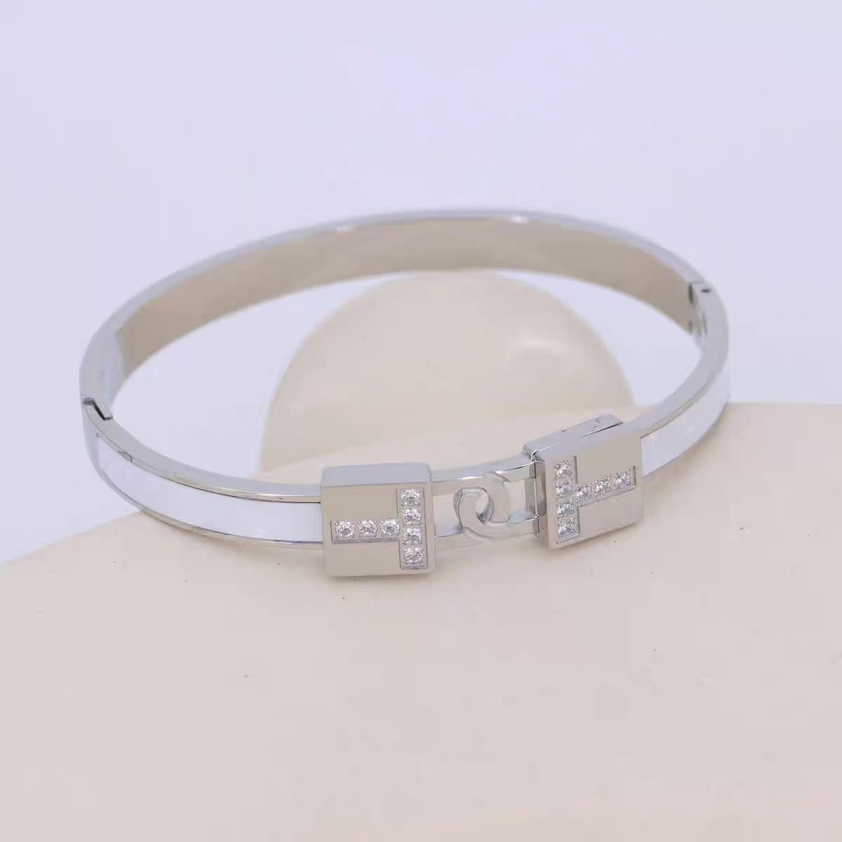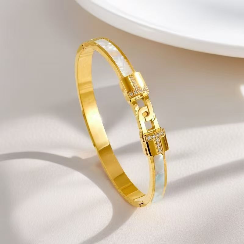 颜色 XSZ/03-50 双T镶石锁白贝卡扣手镯 金色,XSZ/03-50 双T镶石锁白贝卡扣手镯 银色