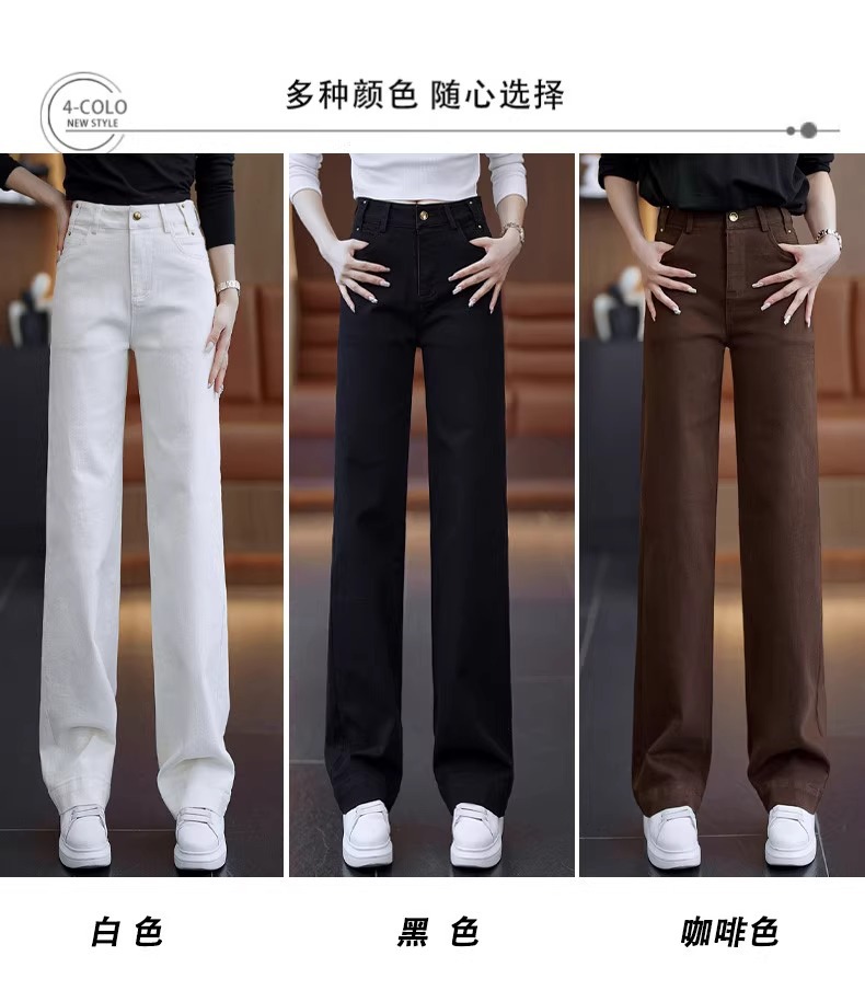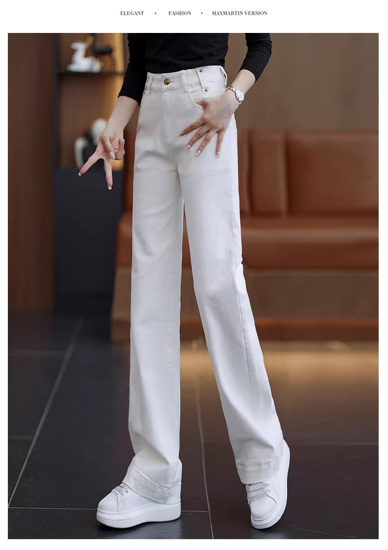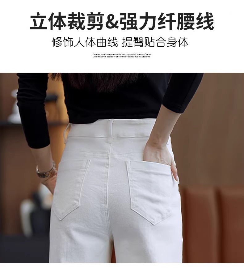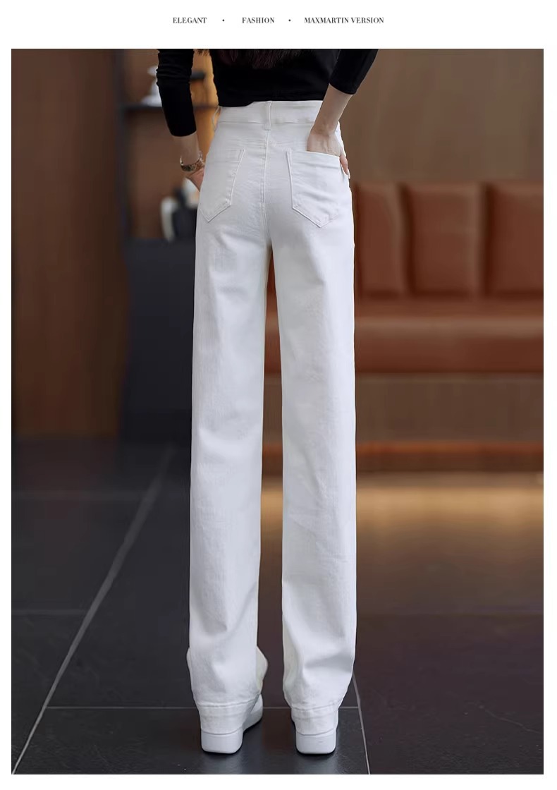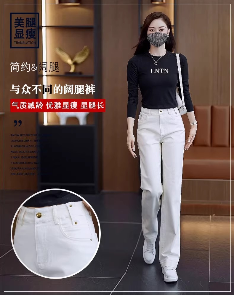 弾力性の米の白いジーパンの女性の2025春の春の新型はゆったりしていて、やせているストレートのズボンは身を修めて高くて、パイプのズボンを現します。