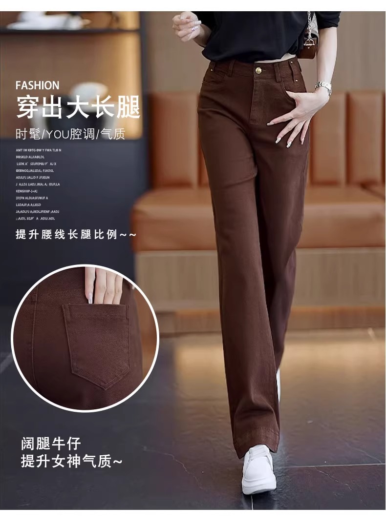 洋气窄版休闲牛仔直筒裤女2025年春秋新款高腰宽松时尚垂感阔腿裤