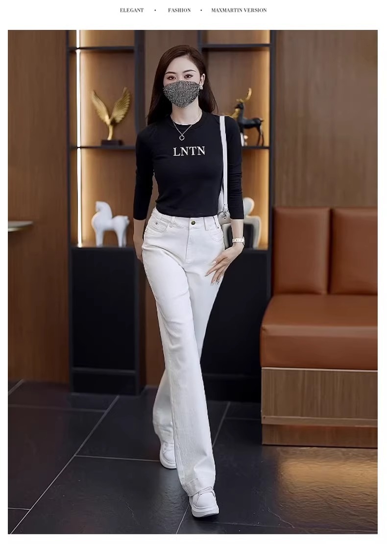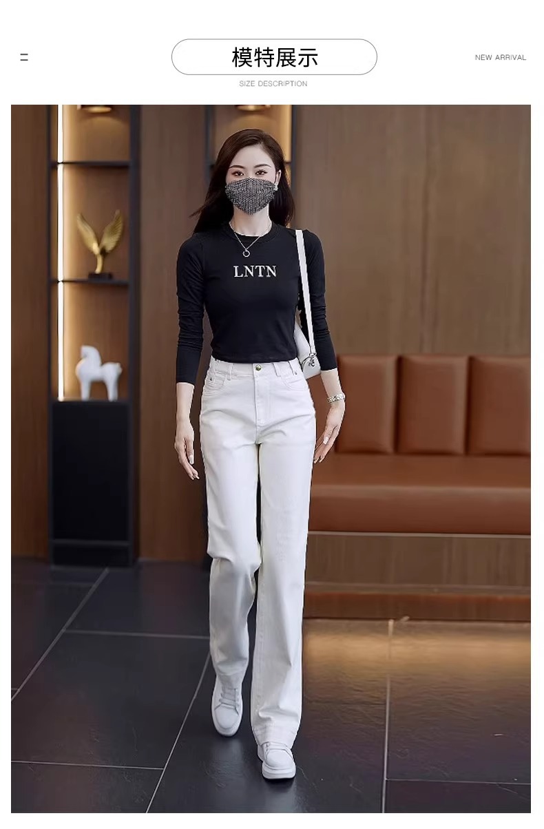 米白色软牛仔直筒裤女春秋2025年新款爆款裤子时尚休闲窄版阔腿裤