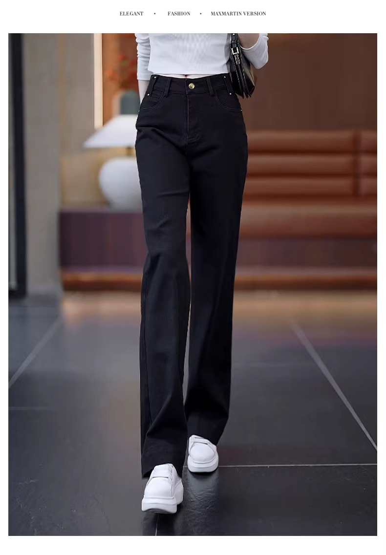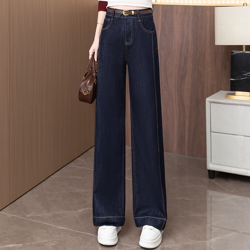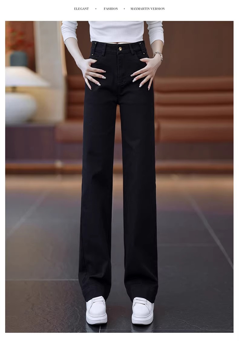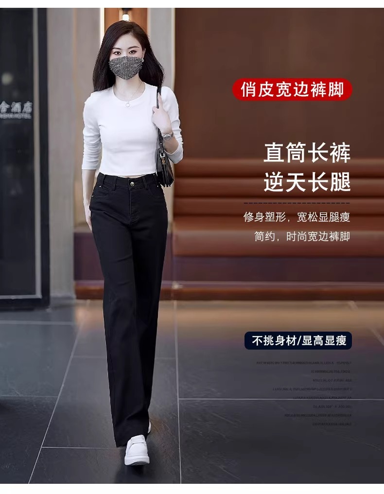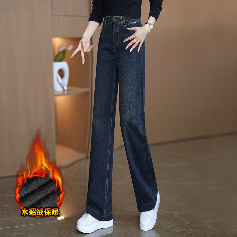 狭いバージョンのストレートジーンズの女性春秋2025年の新型春にベルベットの高腰が痩せている