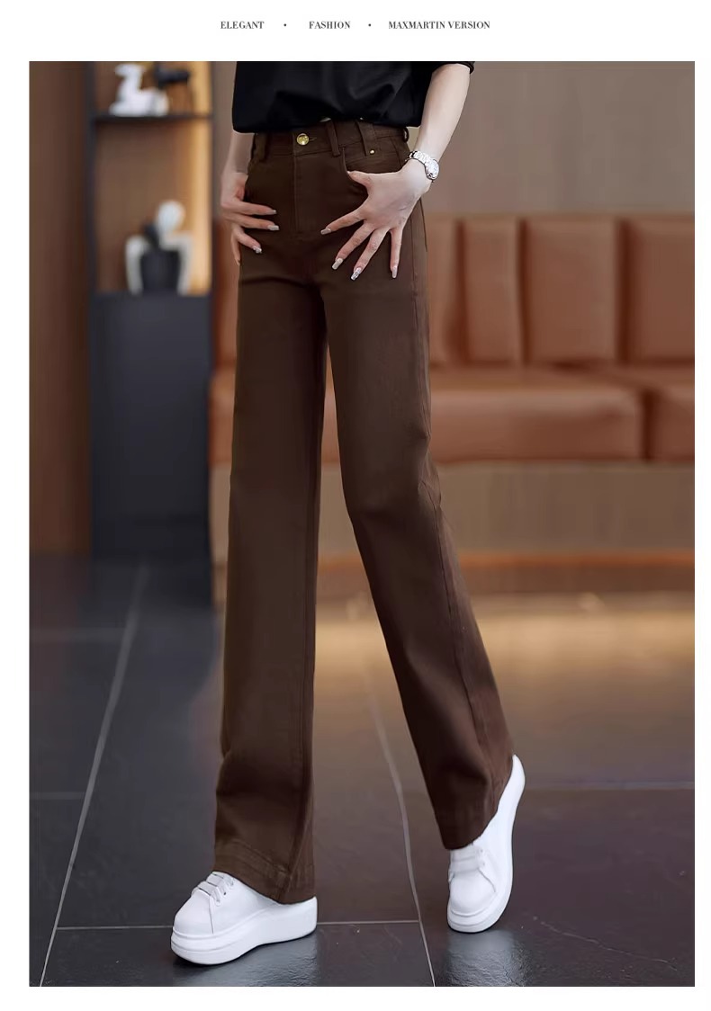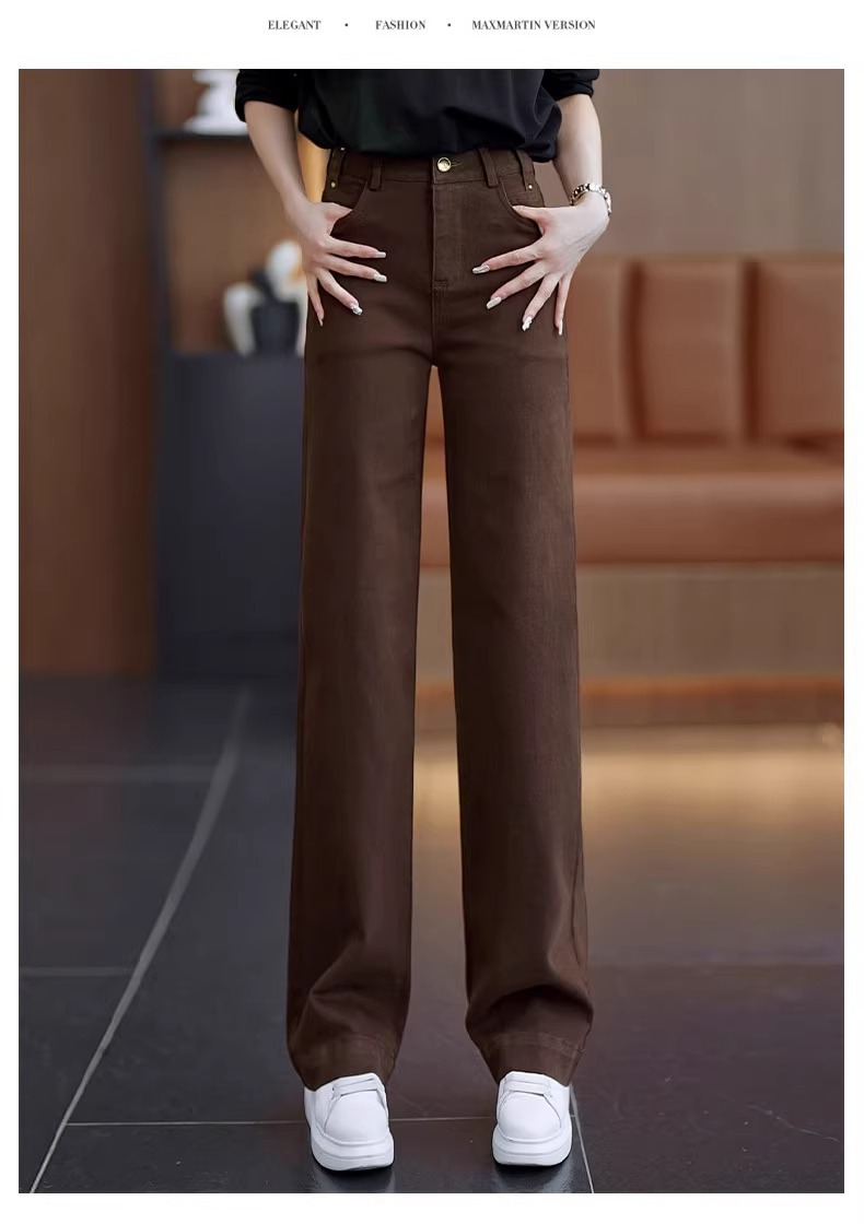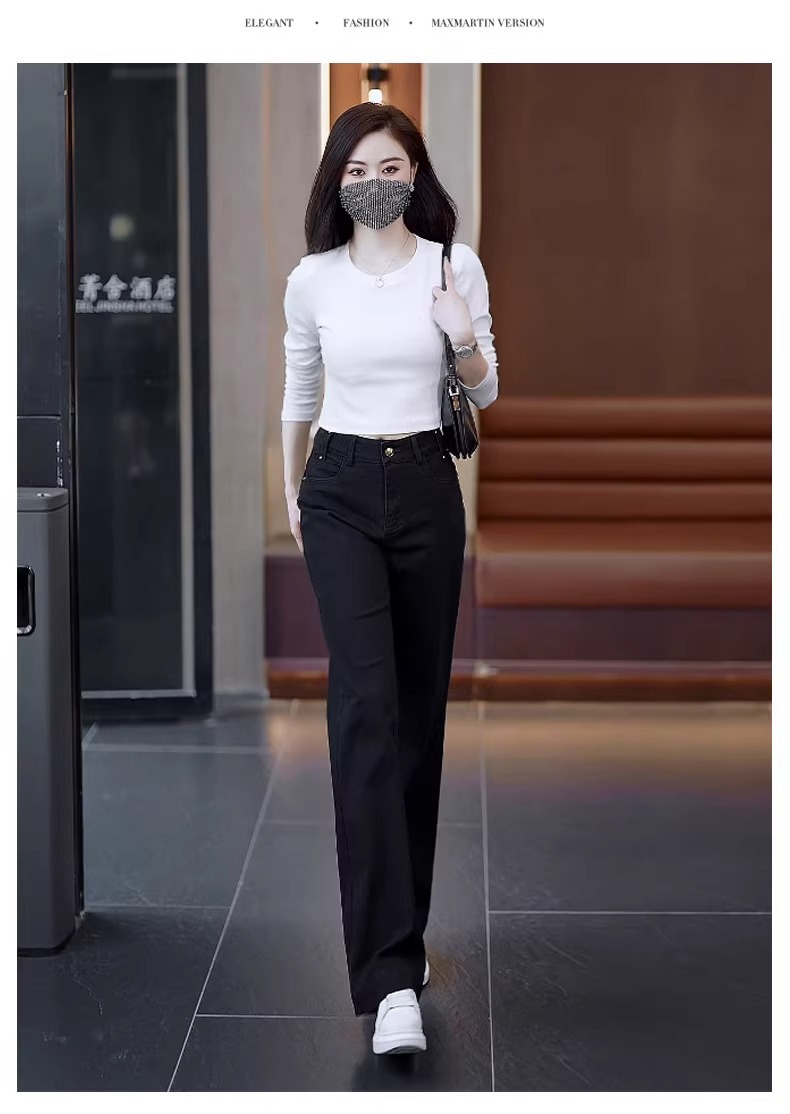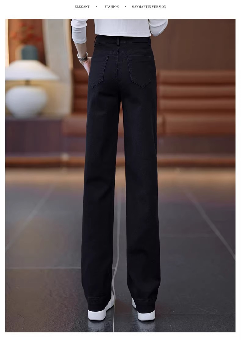 狭いバージョンのストレートジーンズの女性春秋2025年の新型春にベルベットの高腰が痩せている