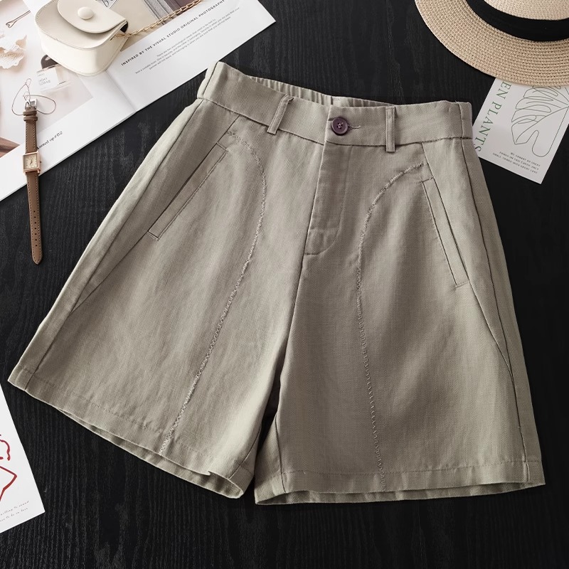 快適なリネンショーツ女性の夏薄い 2025 新しいハイウエスト A ラインコットンとリネンスーツワイドレッグホットパンツ 5 分パンツ