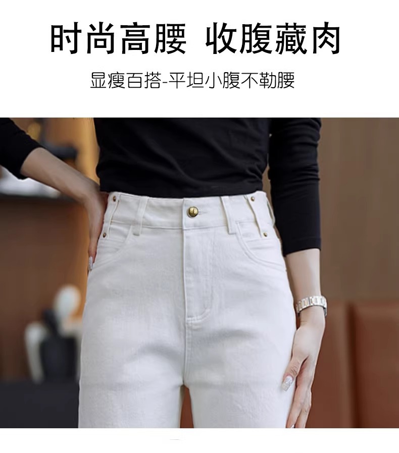 2025秋冬加绒加厚保暖牛仔裤女窄版高腰显瘦舒适亲肤时尚直筒裤