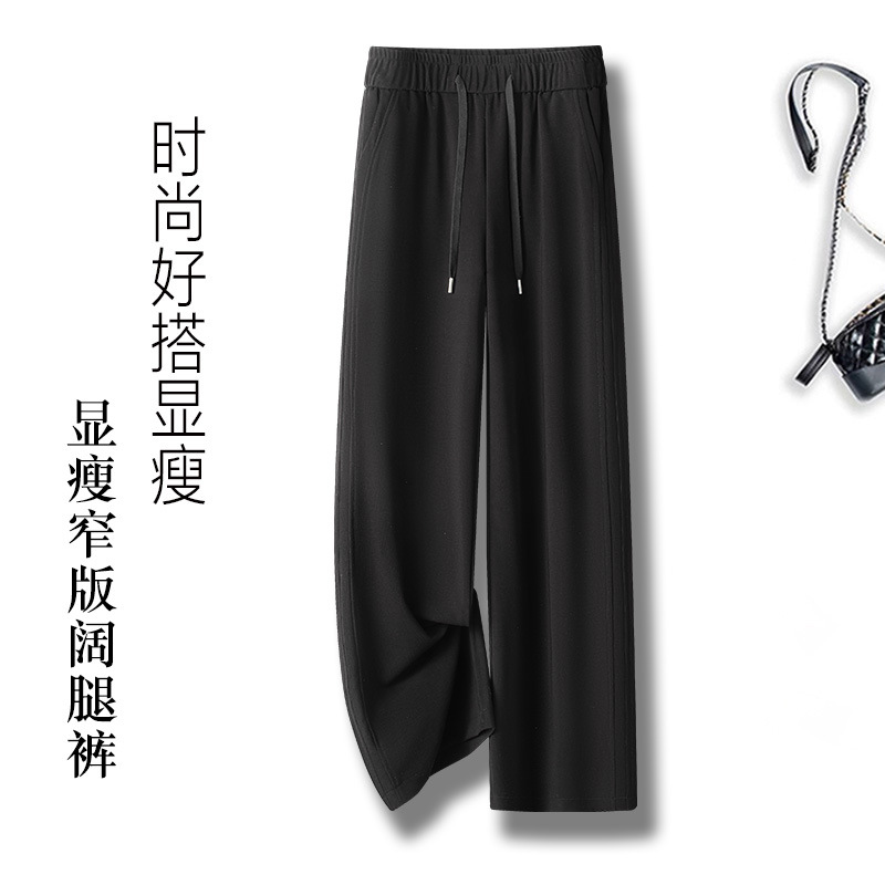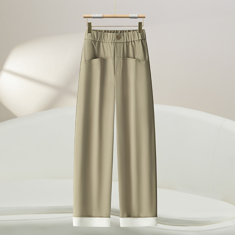 女性用スモールカジュアル9ポイントストレートパンツ2025薄い伸縮性ウエストハイエンドドレープ通気性と快適なストレートパンツ