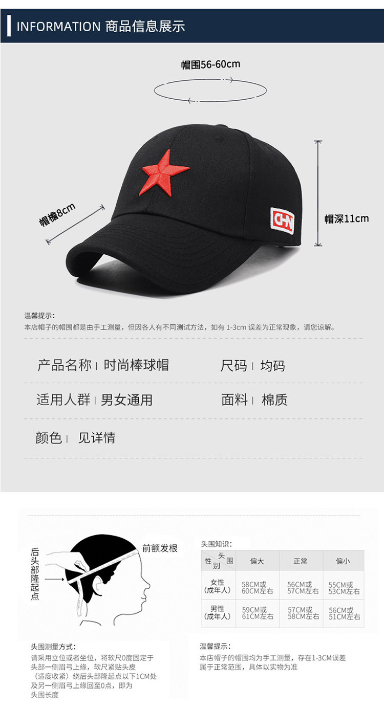 五角星刺绣棒球帽2026国潮新风时尚鸭舌帽个性小众可调节遮阳帽子