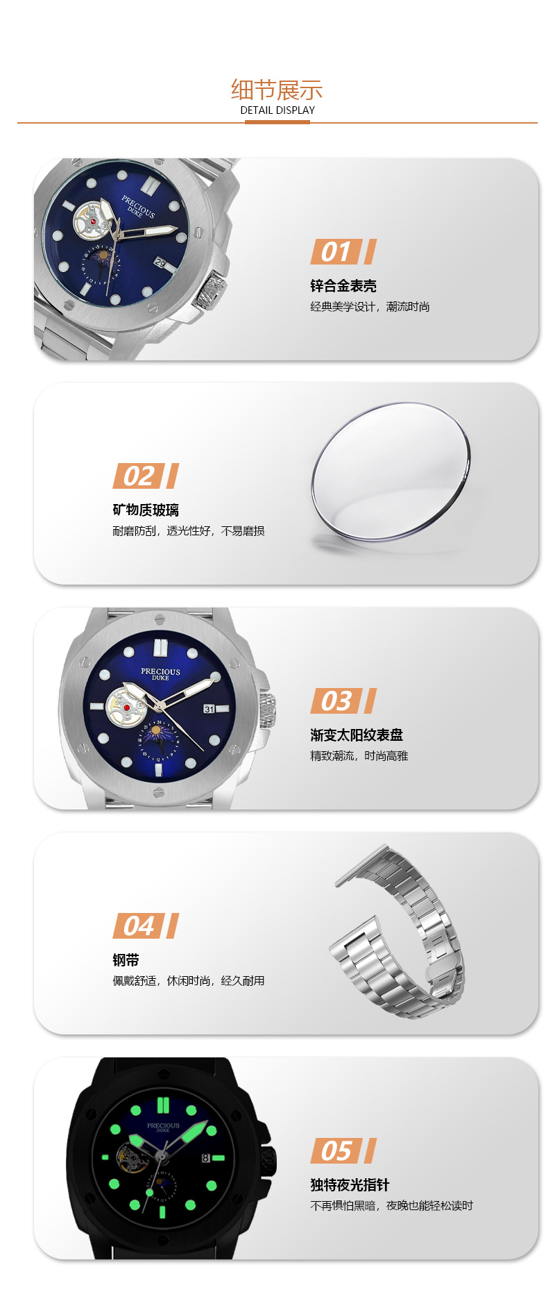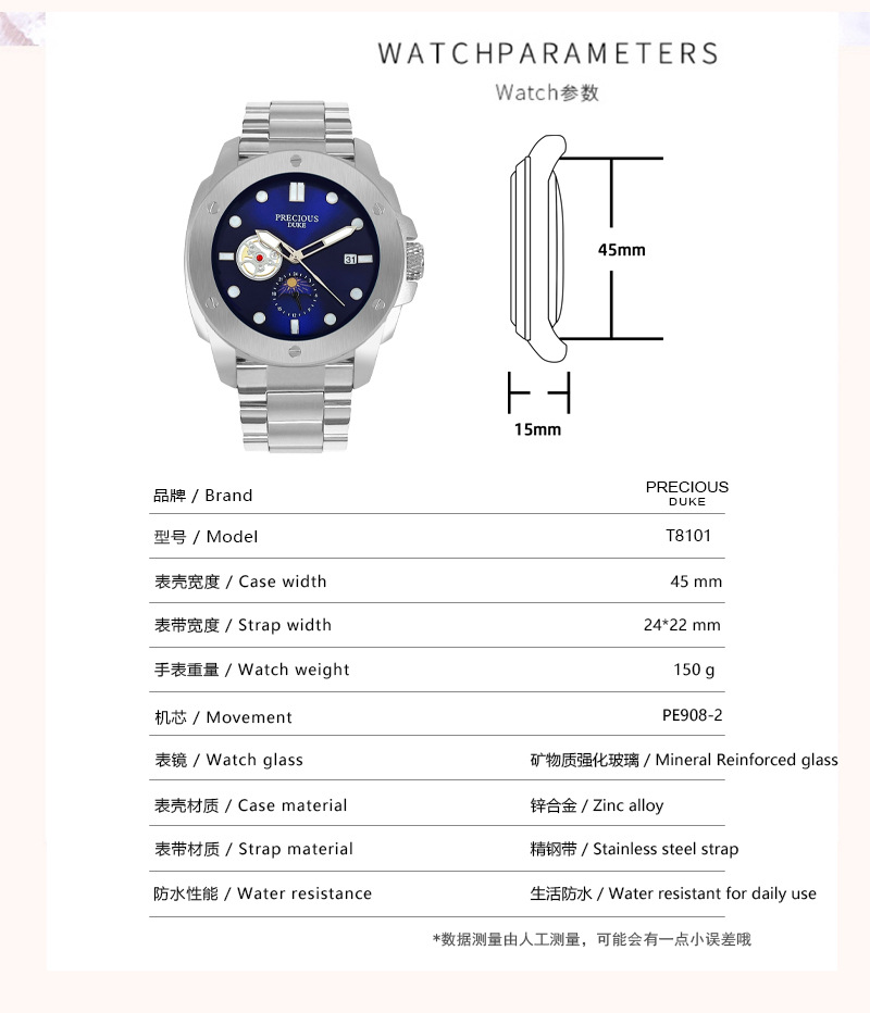 PRECIOUS DUKE公爵百達多機能クラシック男性腕時計石英防水メーカー卸売りクロスボーダー